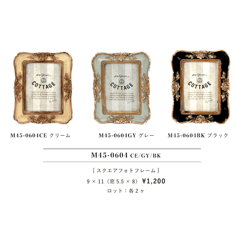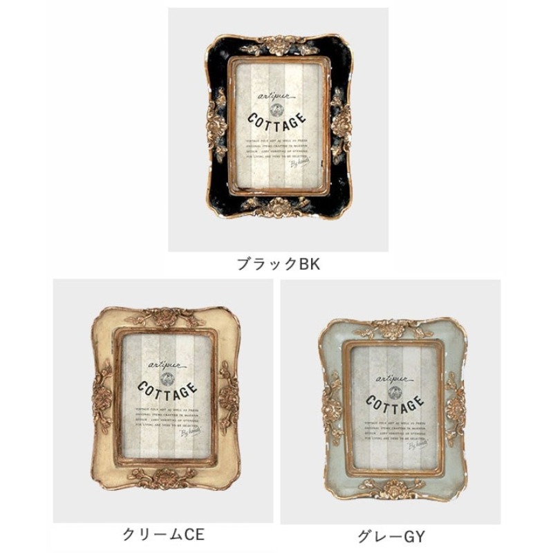 やさしい白やグレーのアンティークカラーが魅力の、レジン製フォトフレームシリーズ。