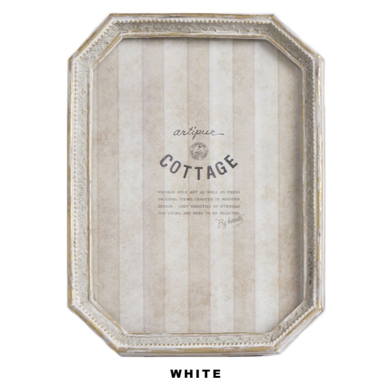 やさしい白やグレーのアンティークカラーが魅力の、レジン製フォトフレームシリーズ。