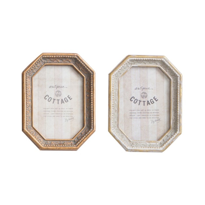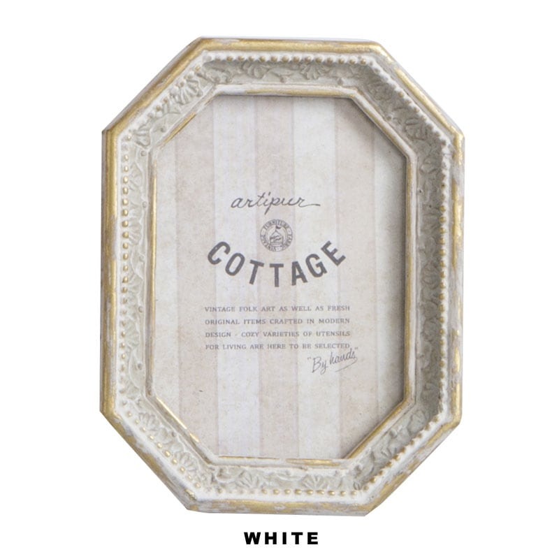 やさしい白やグレーのアンティークカラーが魅力の、レジン製フォトフレームシリーズ。