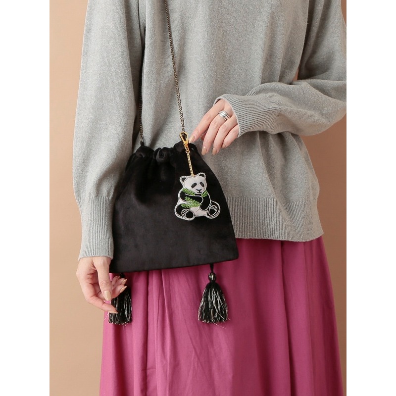 【東京かんかん】ザリ刺繍キーホルダー パンダ&ダブルハピネス