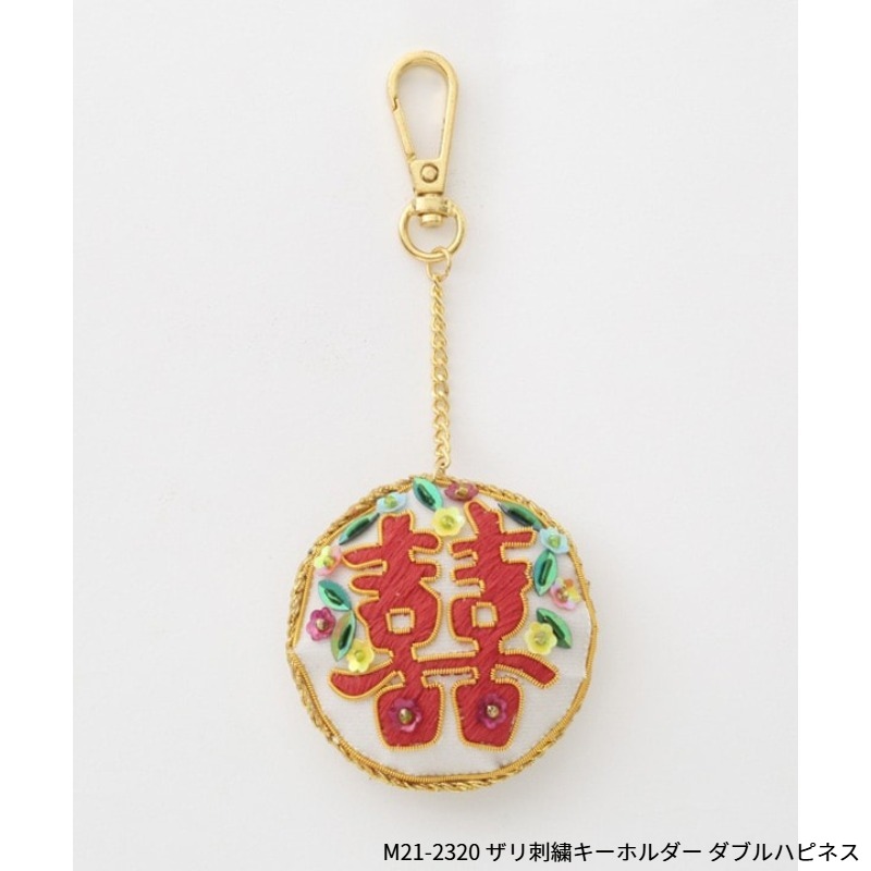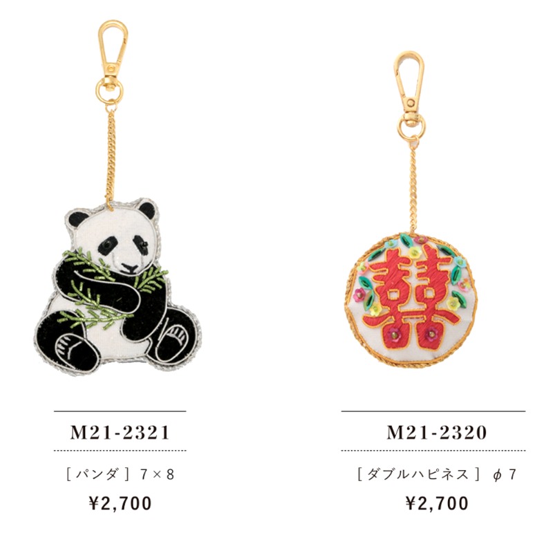 サイズ | 【M21-2321 ザリ刺繍キーホルダー パンダ】W7 H8 【M21-2320 ザリ刺繍キーホルダー ダブルハピネス】φ7 |