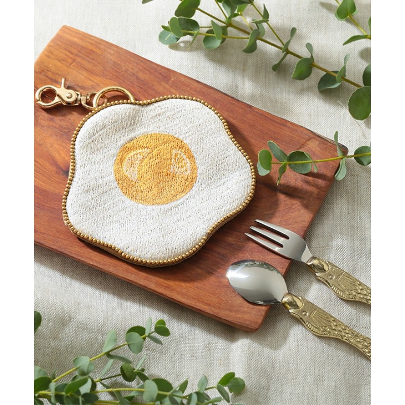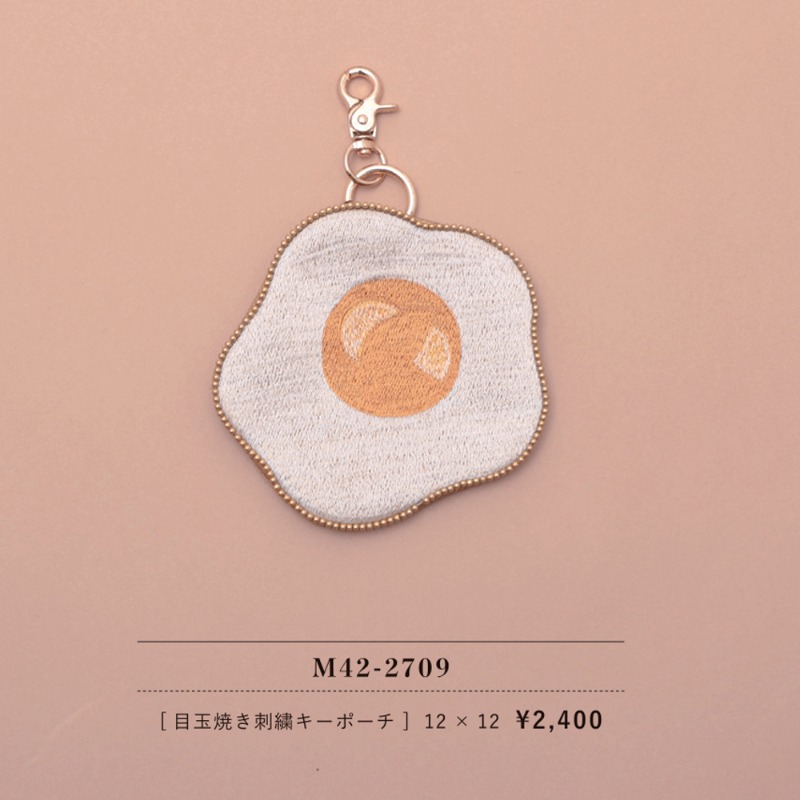 【東京かんかん】ビーズ刺繍キーポーチ 目玉焼き ハンドメイド