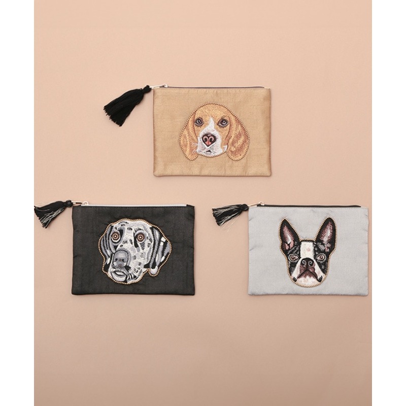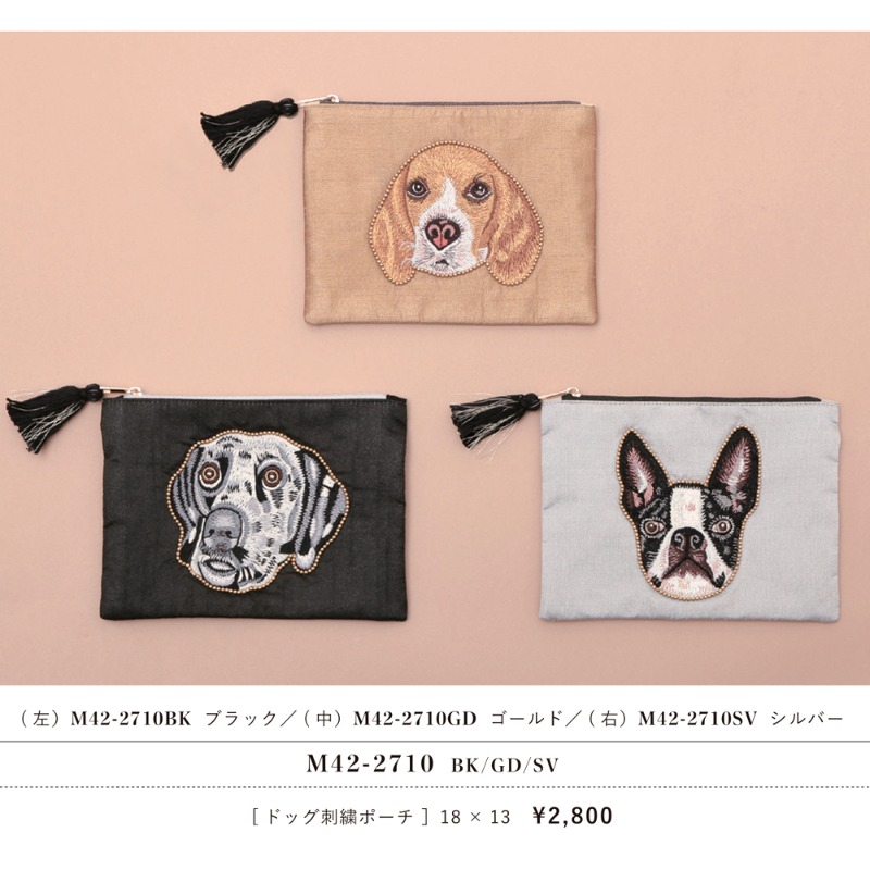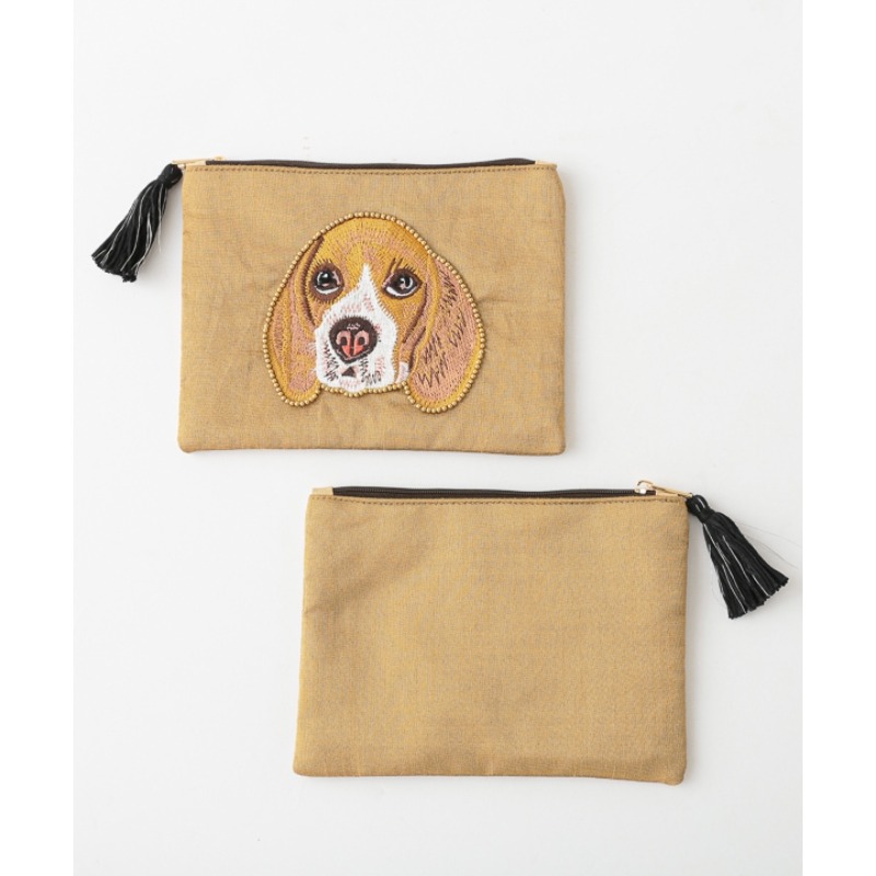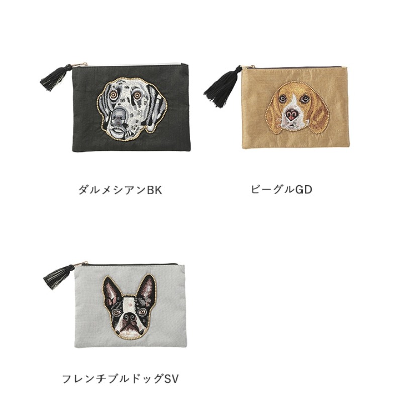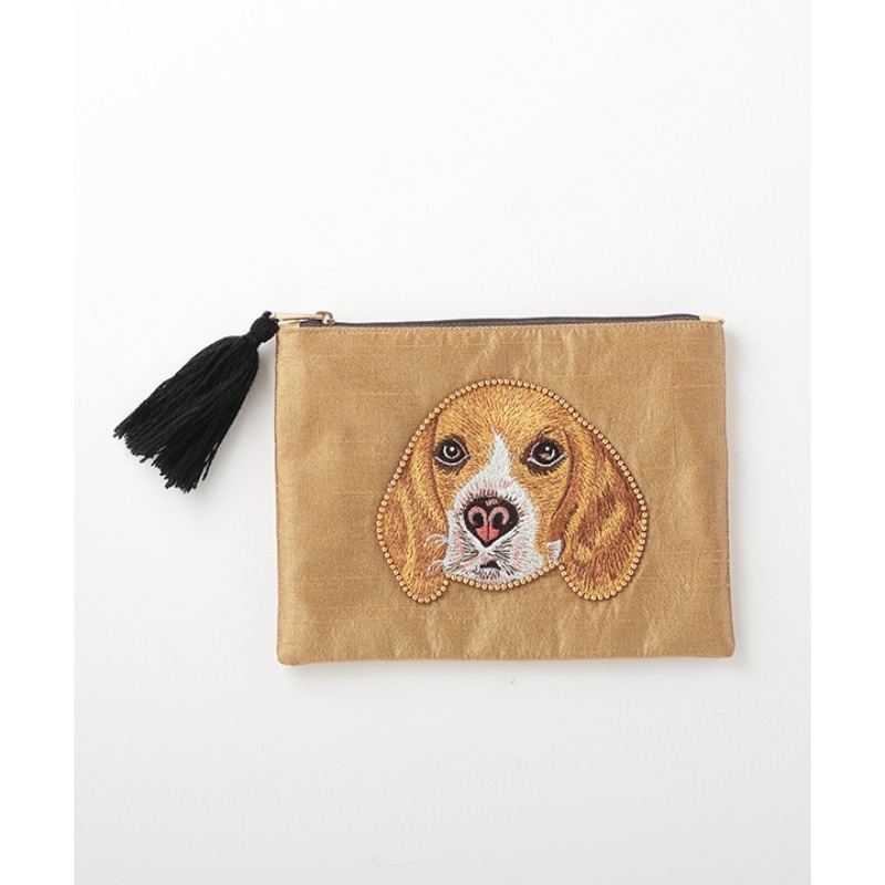 【東京かんかん】ビーズ刺繍ポーチ ドッグ 犬 ハンドメイド