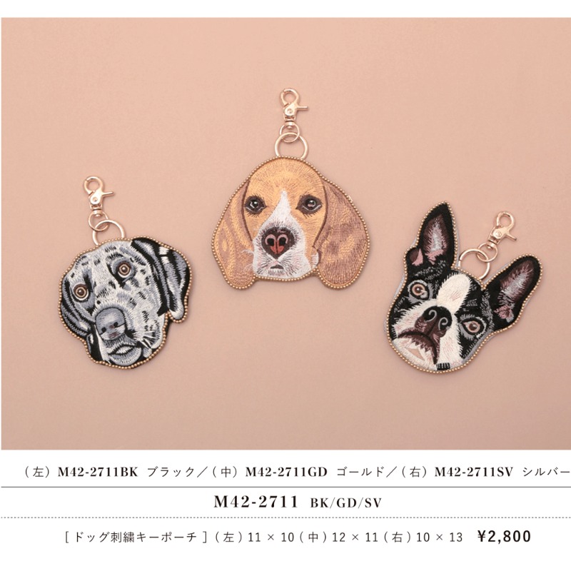 サイズ | 【M42-2711BK ドッグ刺繍キーポーチ ブラック】11×10 【M42-2711GD ドッグ刺繍キーポーチ ゴールド】12×11 【M42-2711SV ドッグ刺繍キーポーチ シルバー】10×13 |