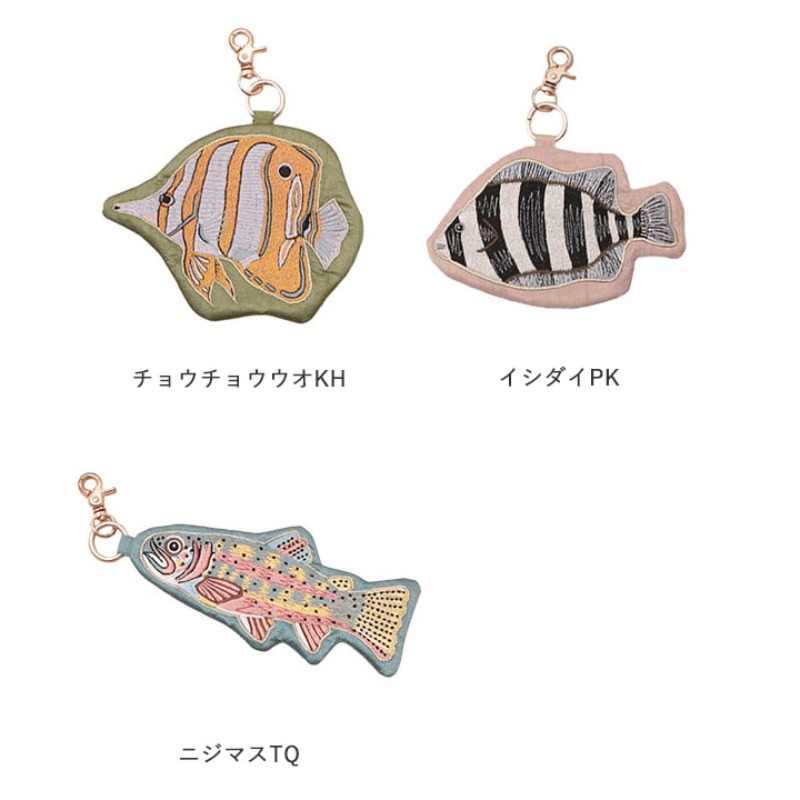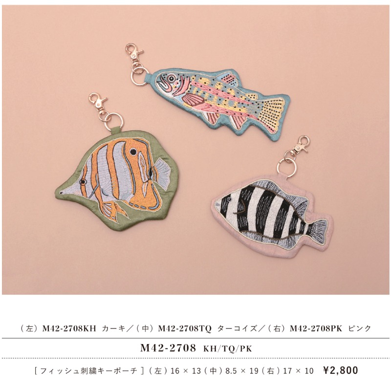 サイズ | 【M42-2708KH フィッシュ刺繍キーポーチ カーキ】16×13 【M42-2708TQ フィッシュ刺繍キーポーチ ターコイズ】8.5×19 【M42-2708PK フィッシュ刺繍キーポーチ ピンク】17×10 |