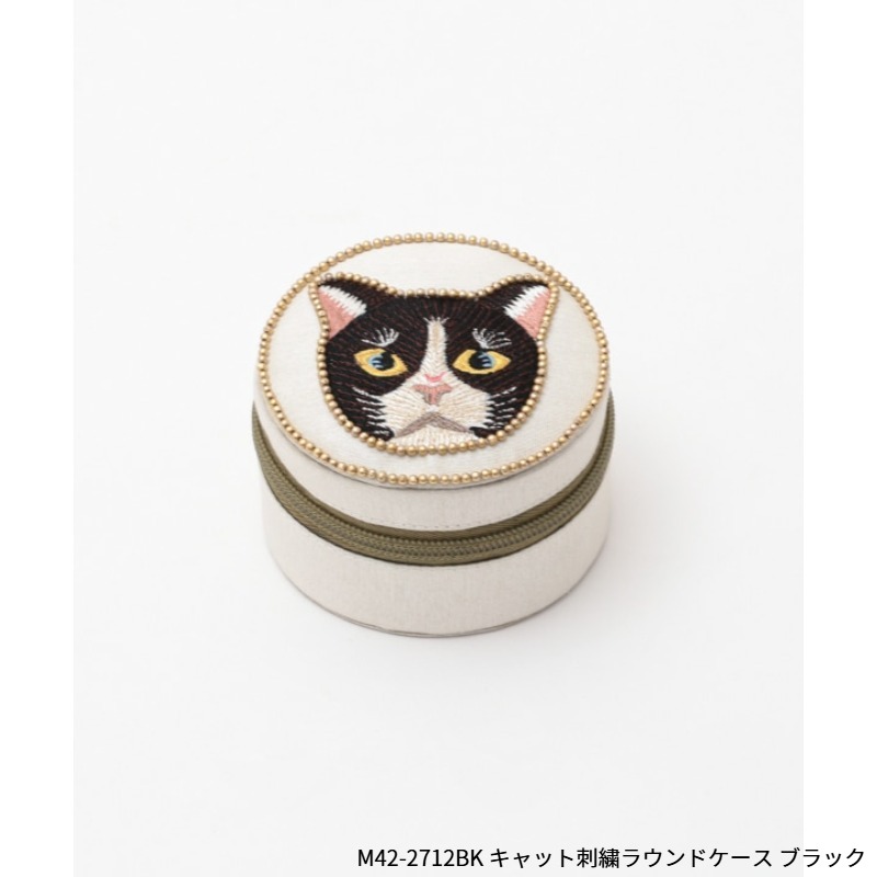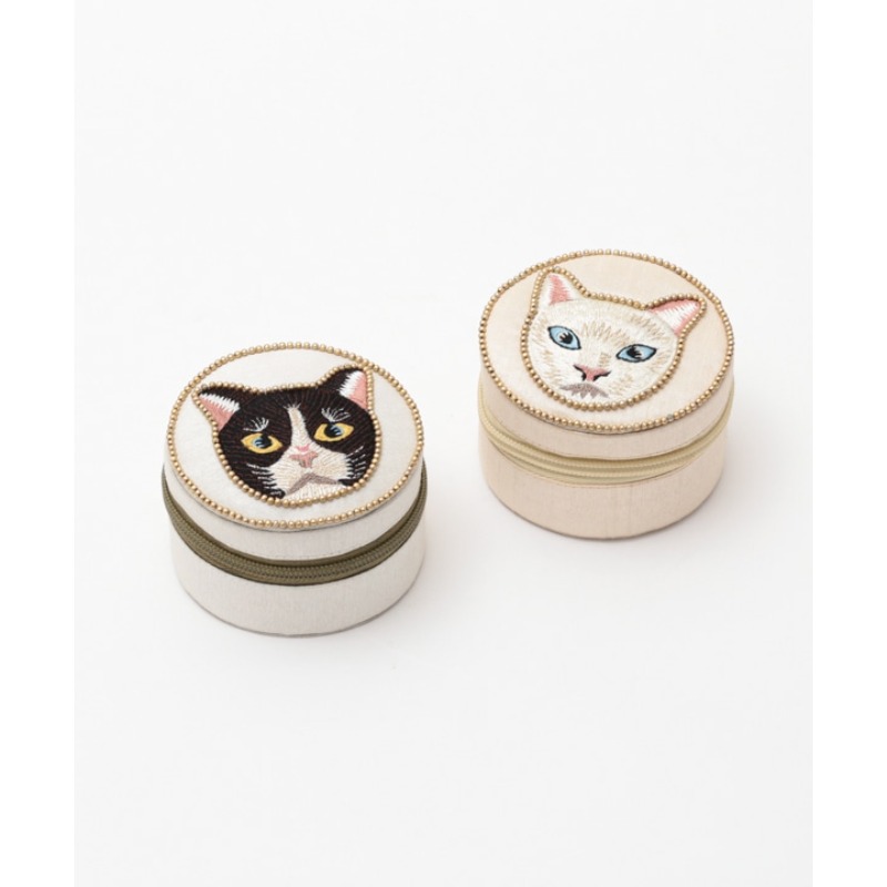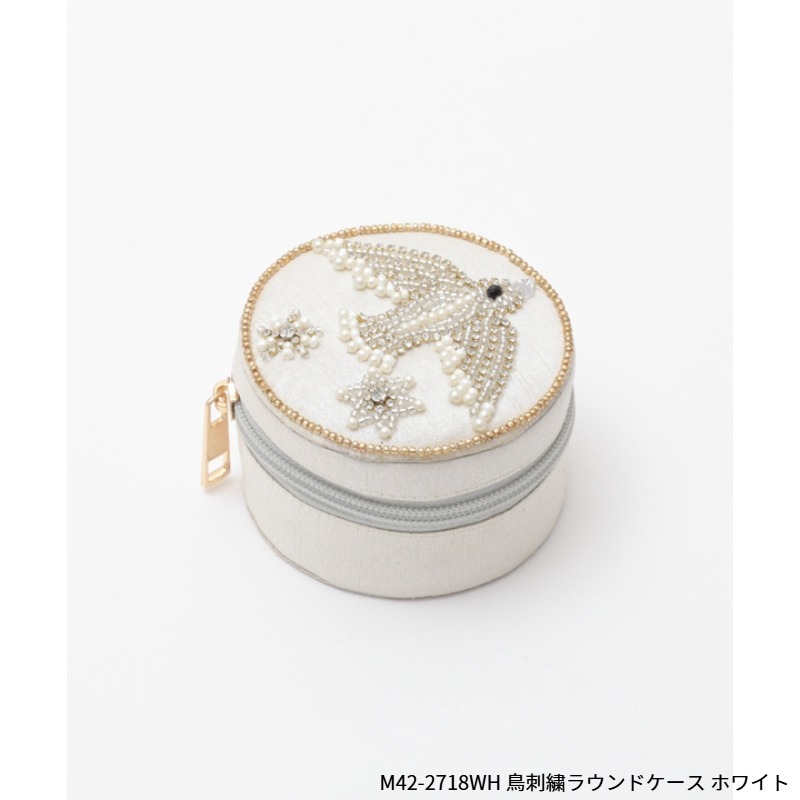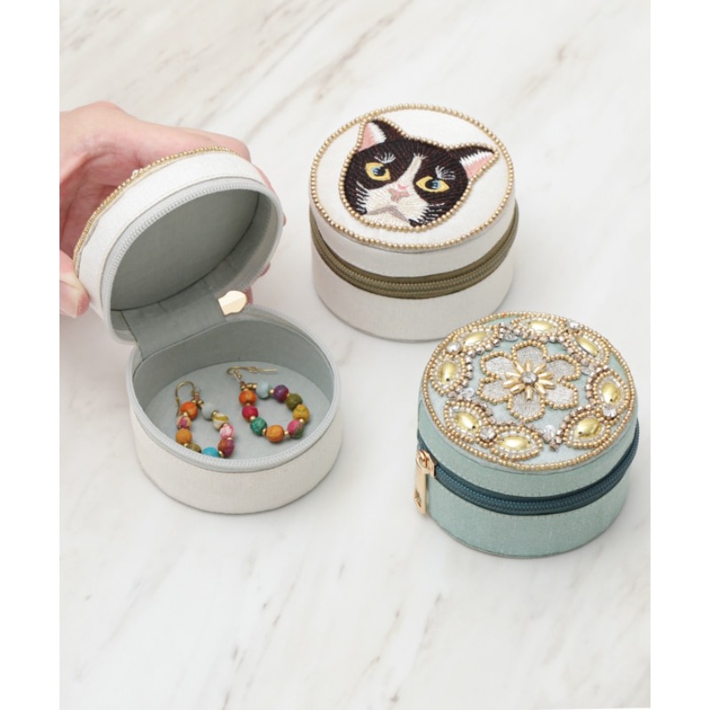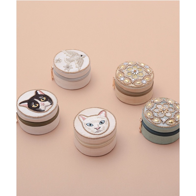 【東京かんかん】ビーズ刺繍ラウンドケース 鳥&猫 ハンドメイド