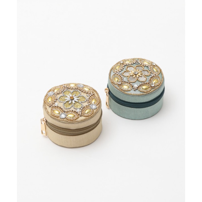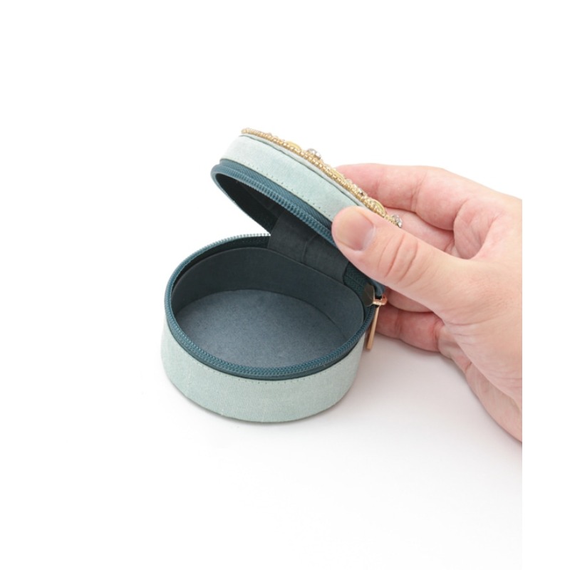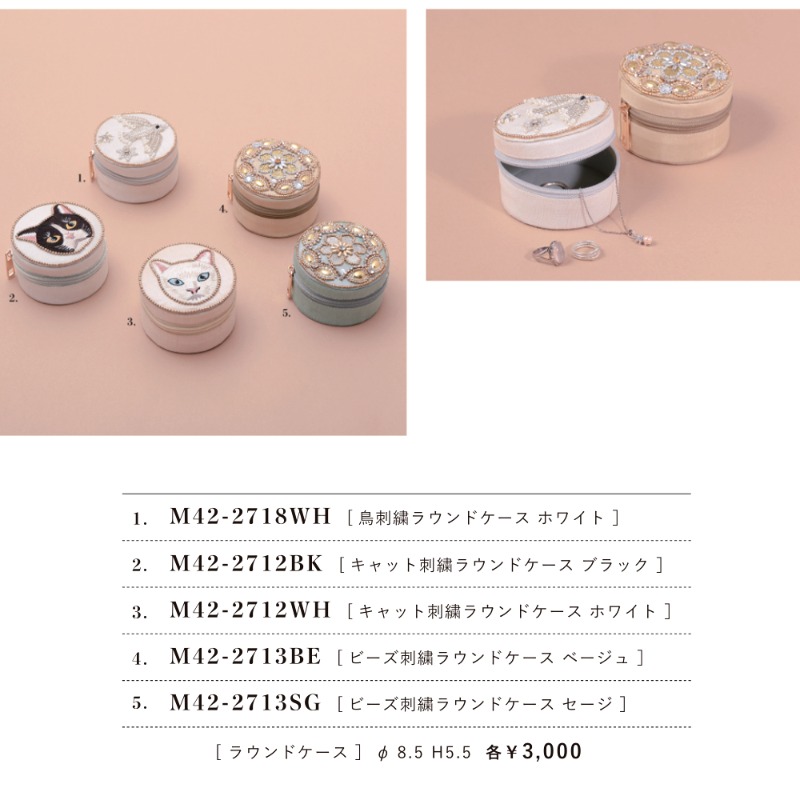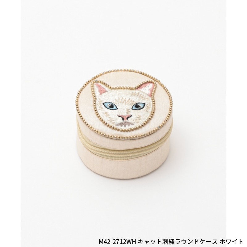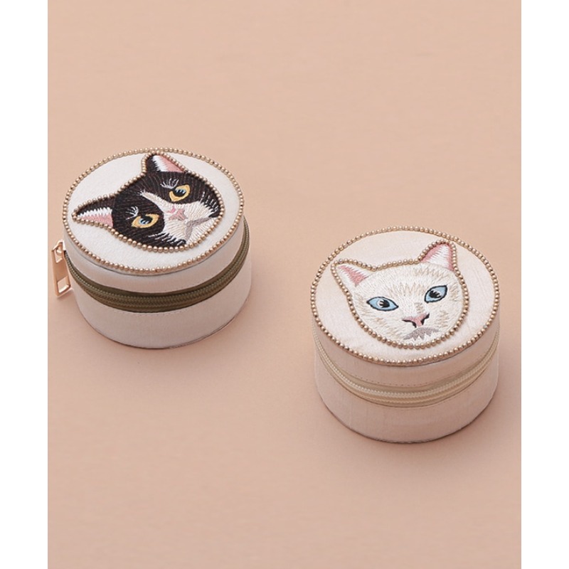 【東京かんかん】ビーズ刺繍ラウンドケース 鳥&猫 ハンドメイド