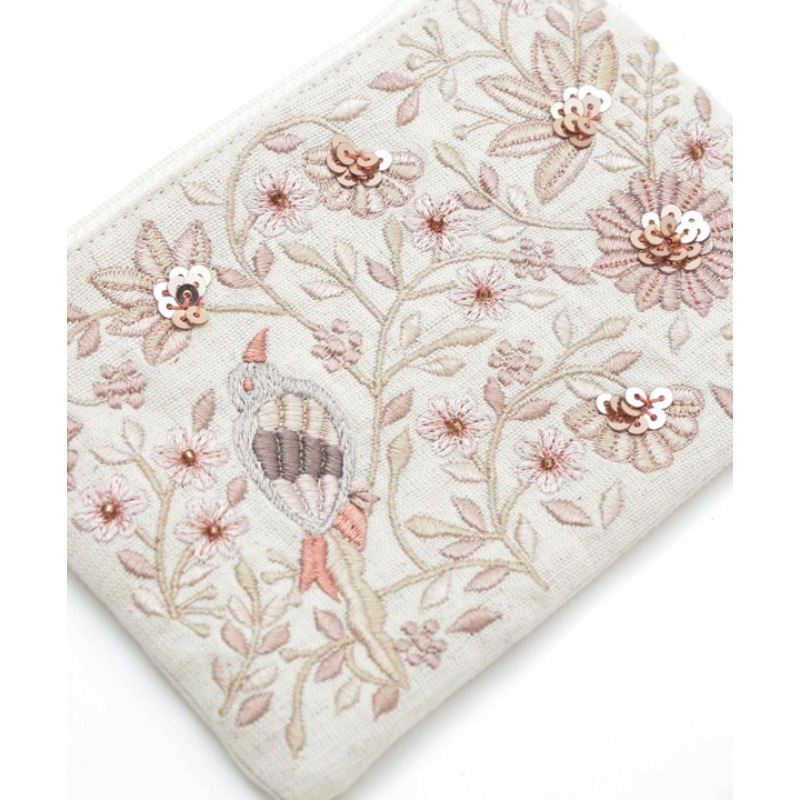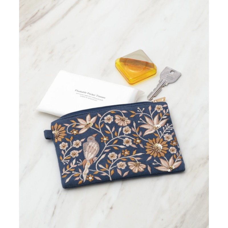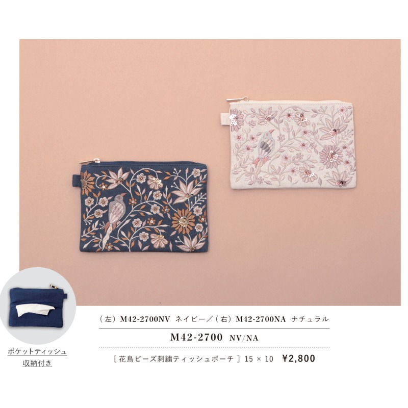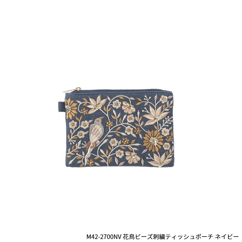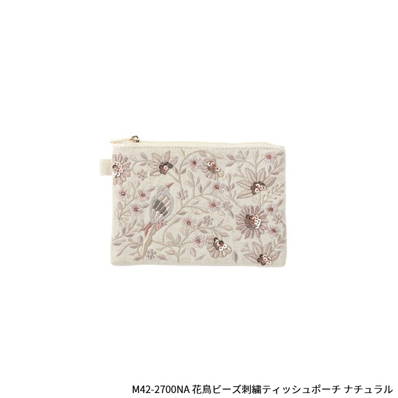 【東京かんかん】ビーズ刺繍ティッシュポーチ 花鳥 ハンドメイド