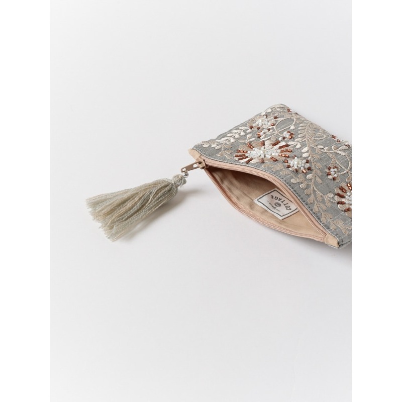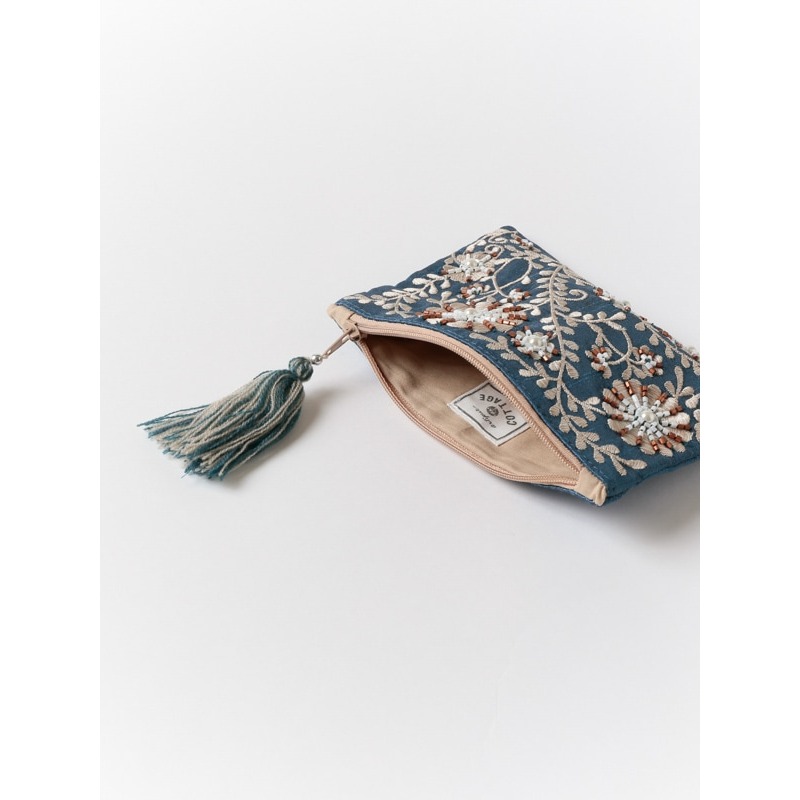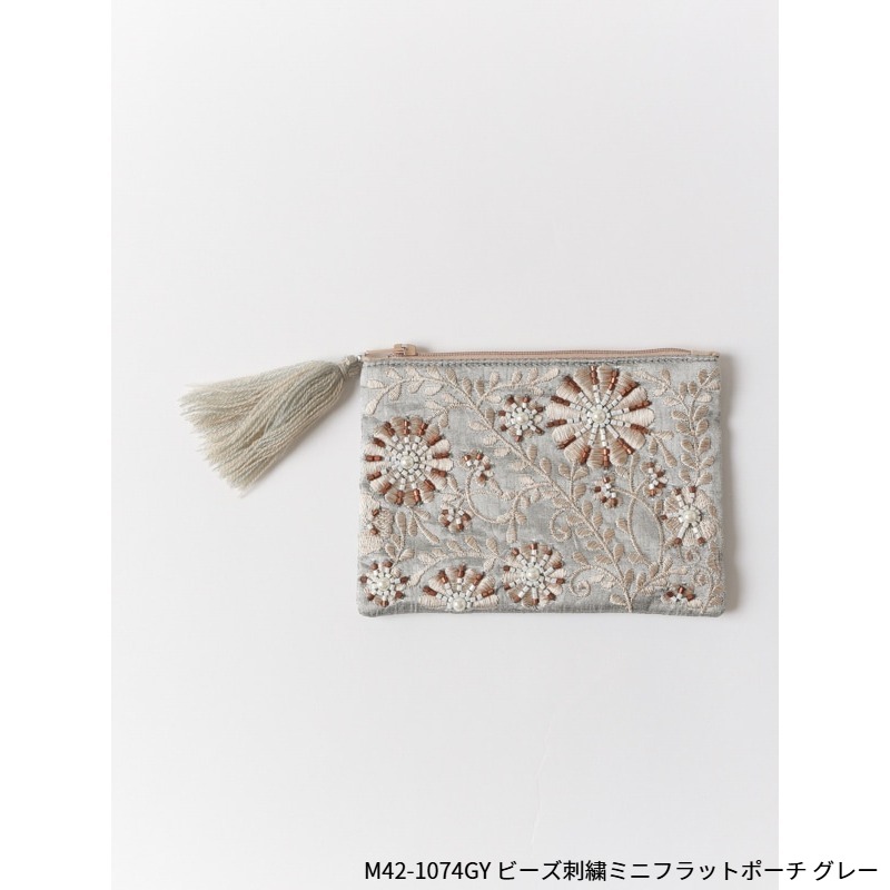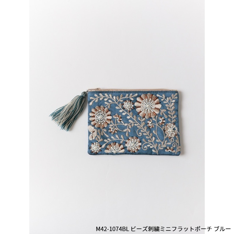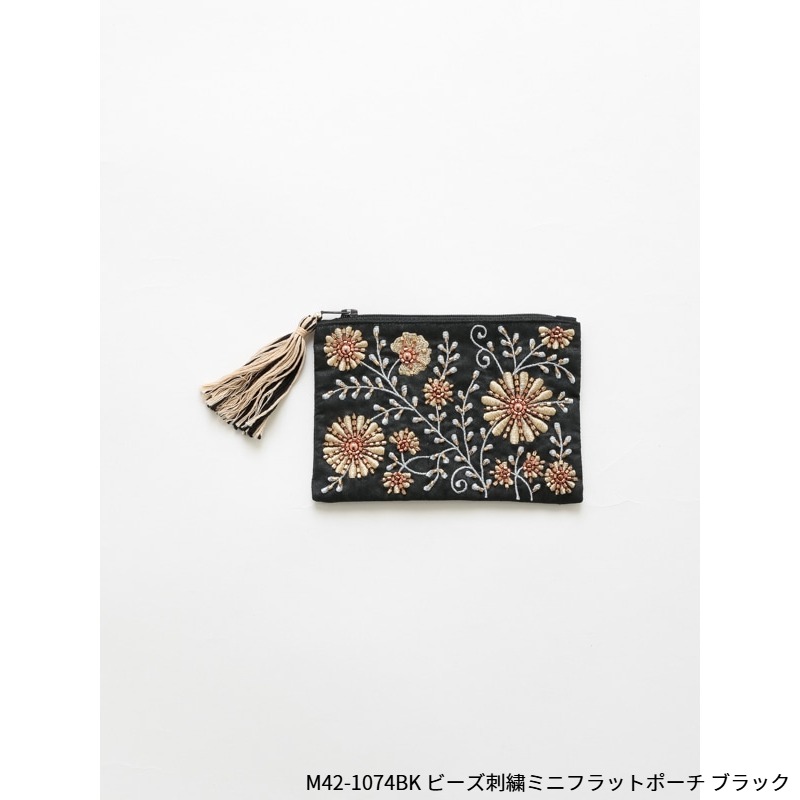 【東京かんかん】ビーズ刺繍ミニフラットポーチ ハンドメイド