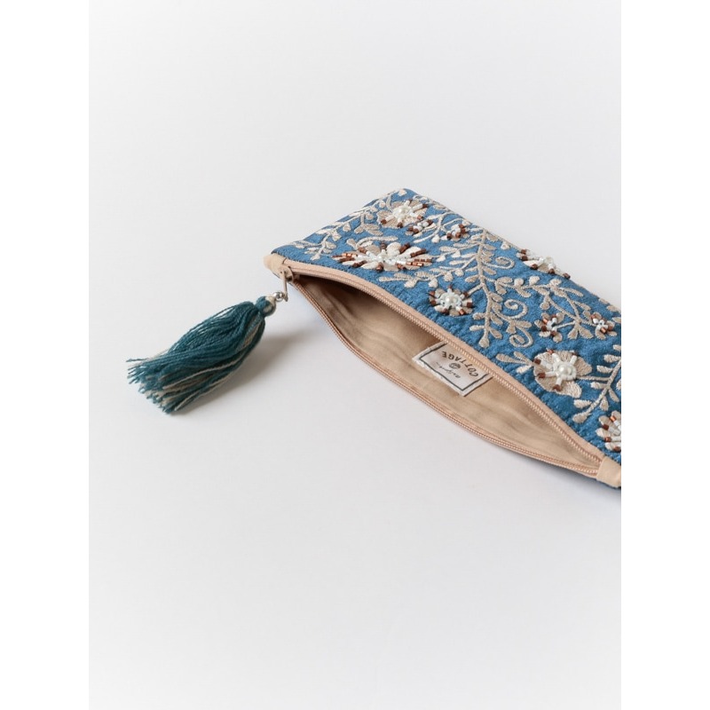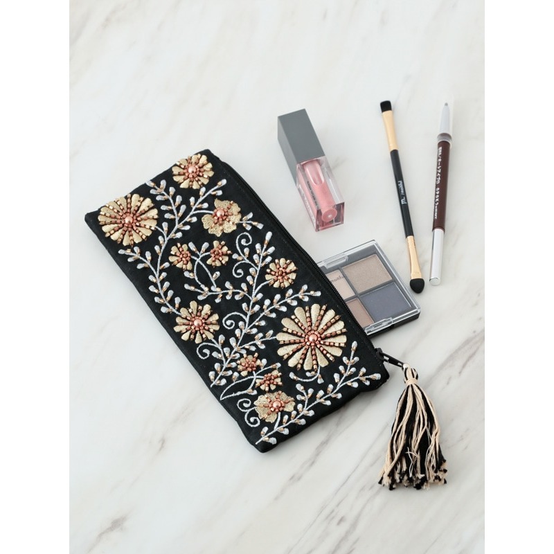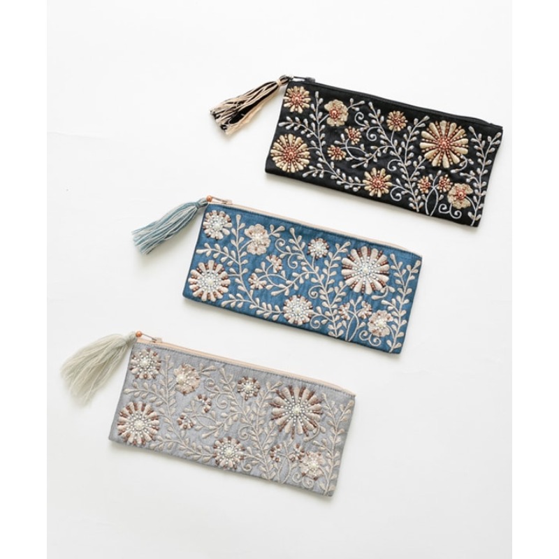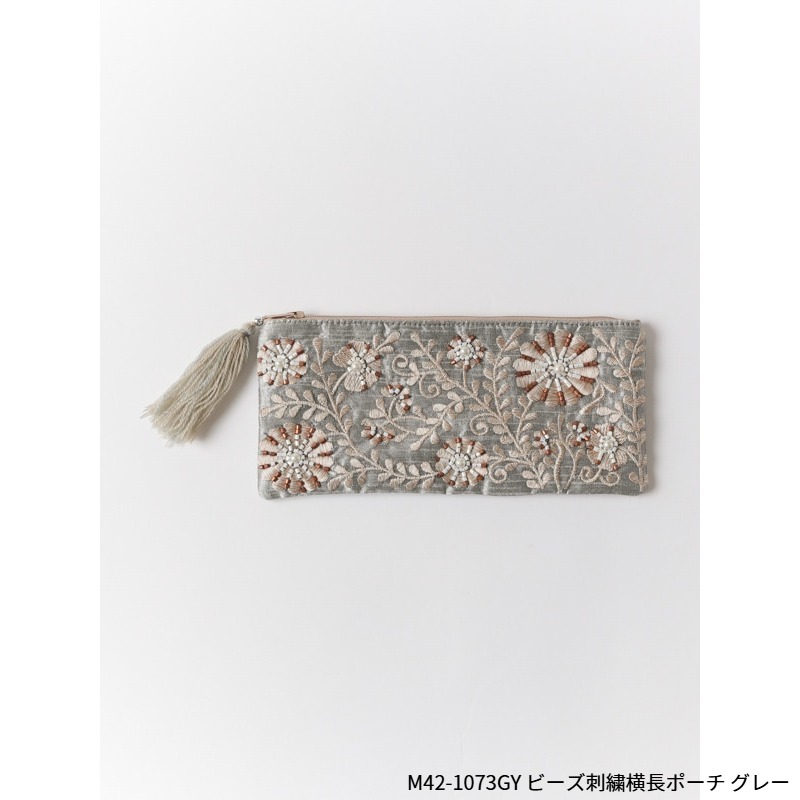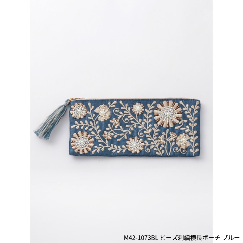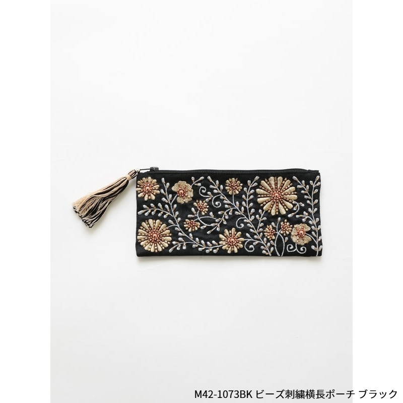 【東京かんかん】ビーズ刺繍 横長ポーチ ハンドメイド