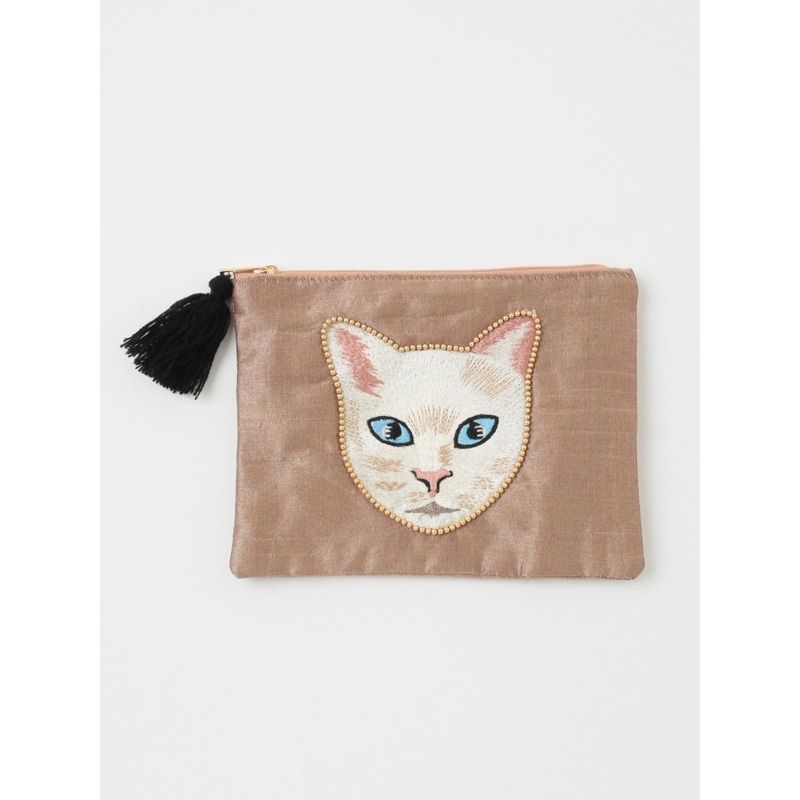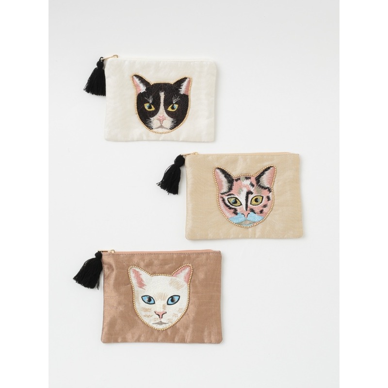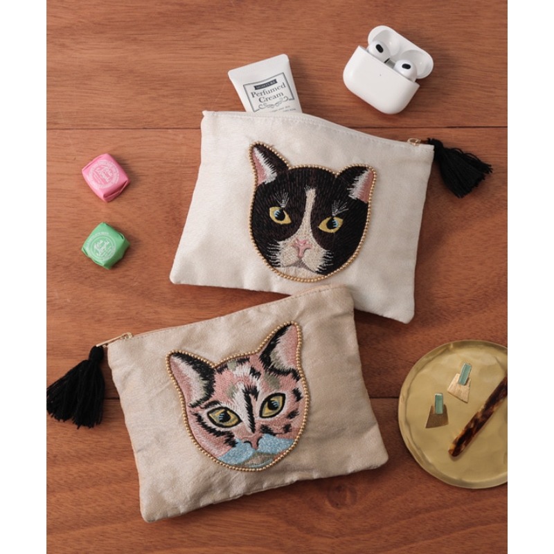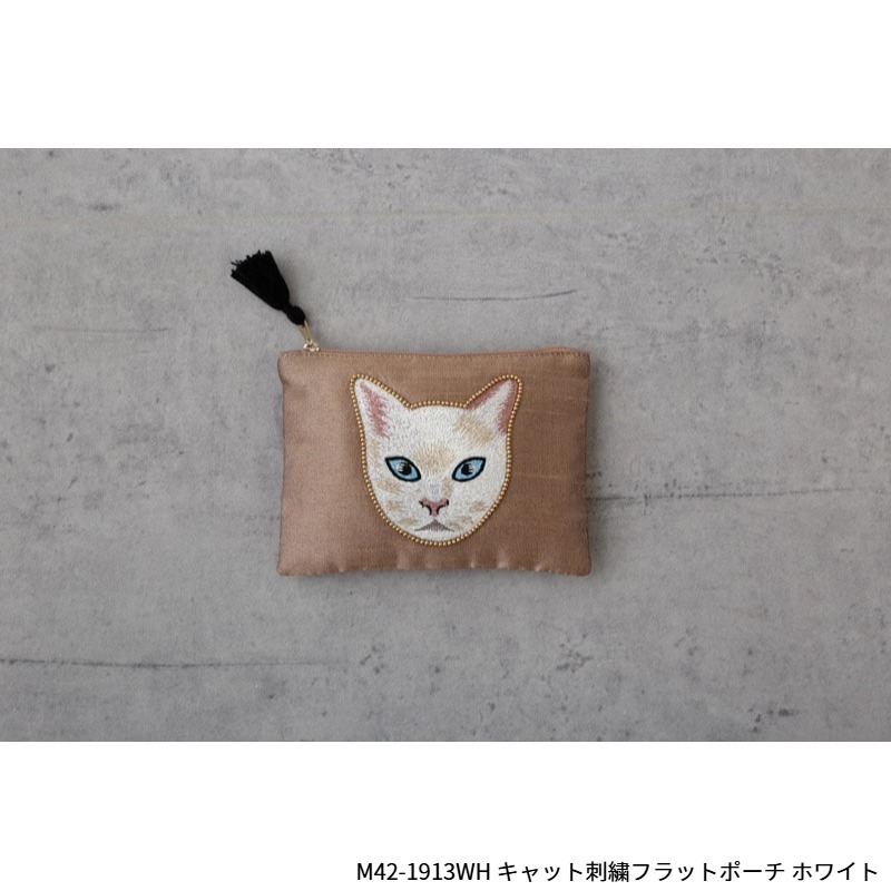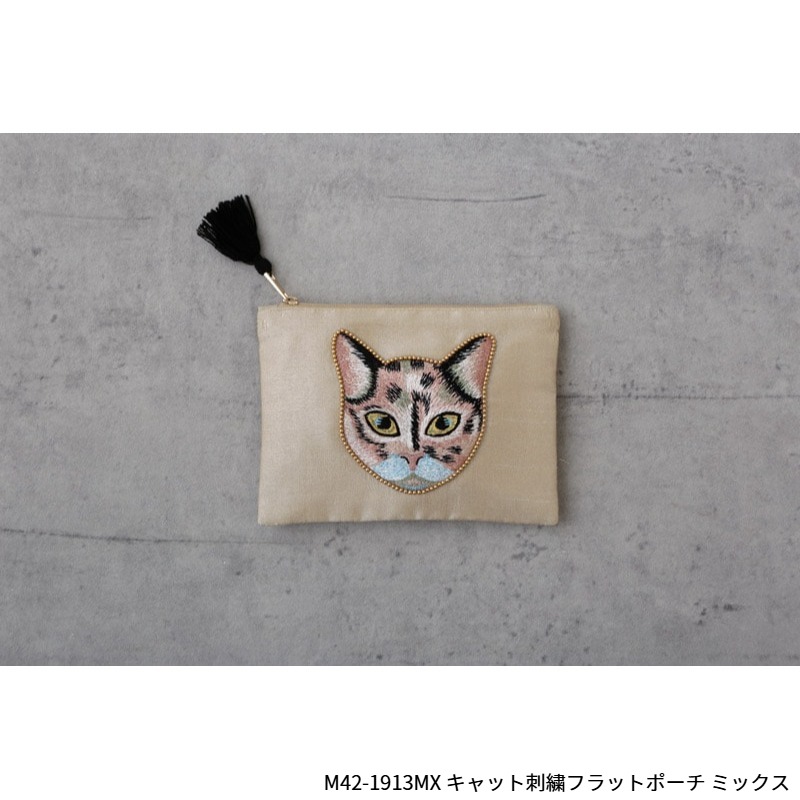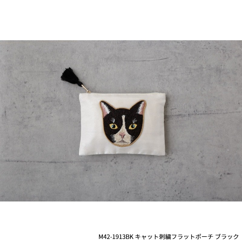 【東京かんかん】キャット刺繍フラットポーチ 猫 ハンドメイド