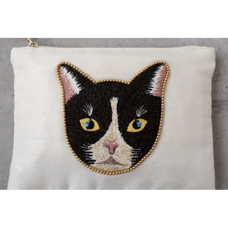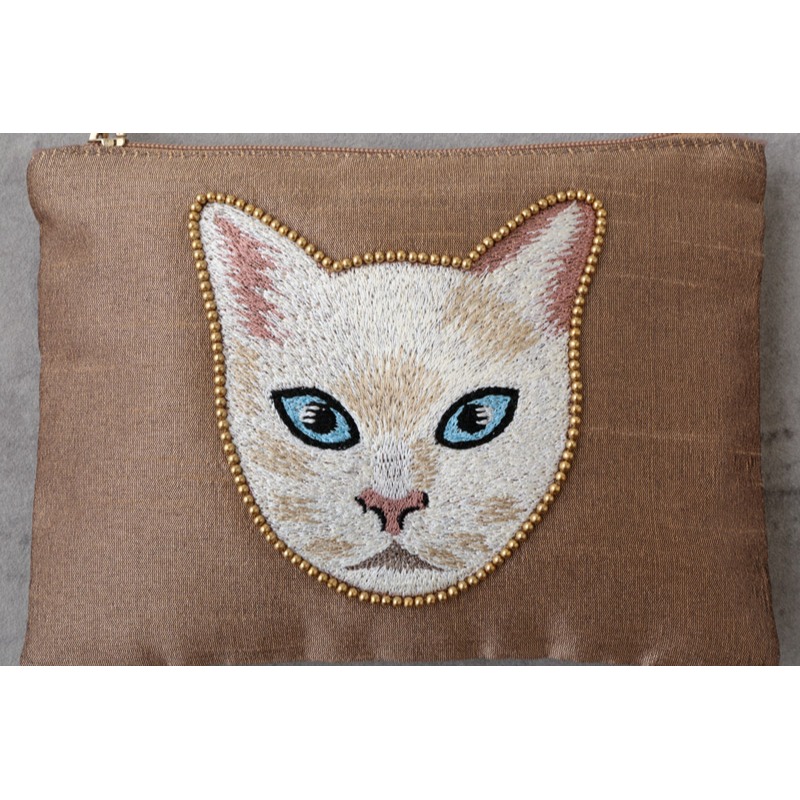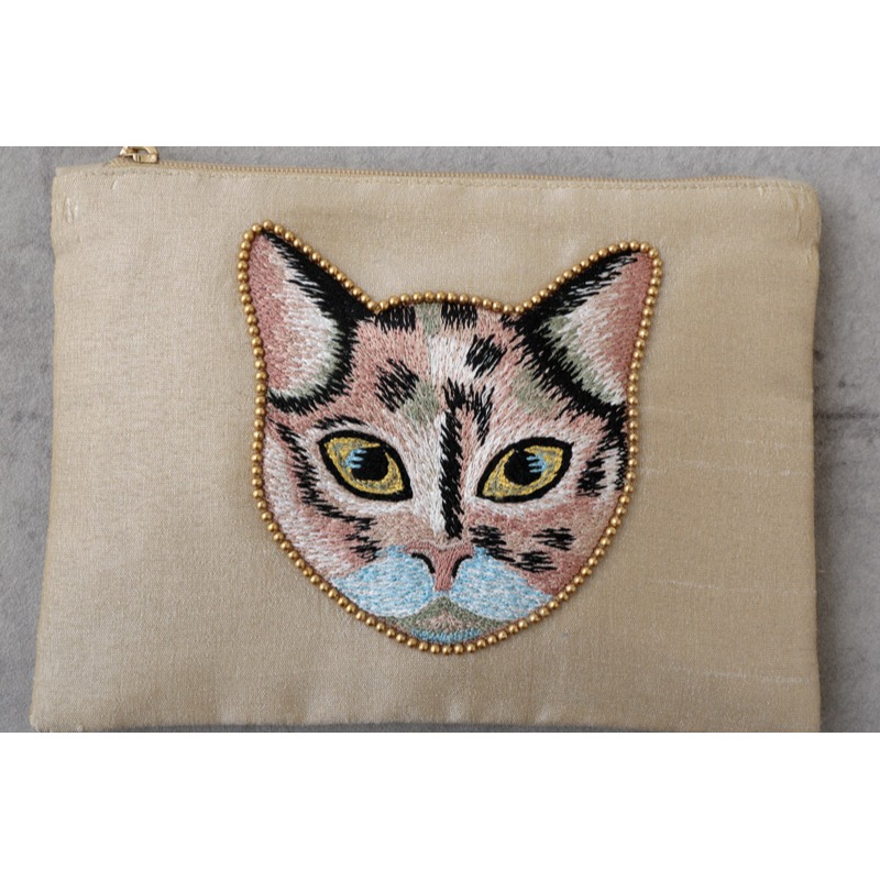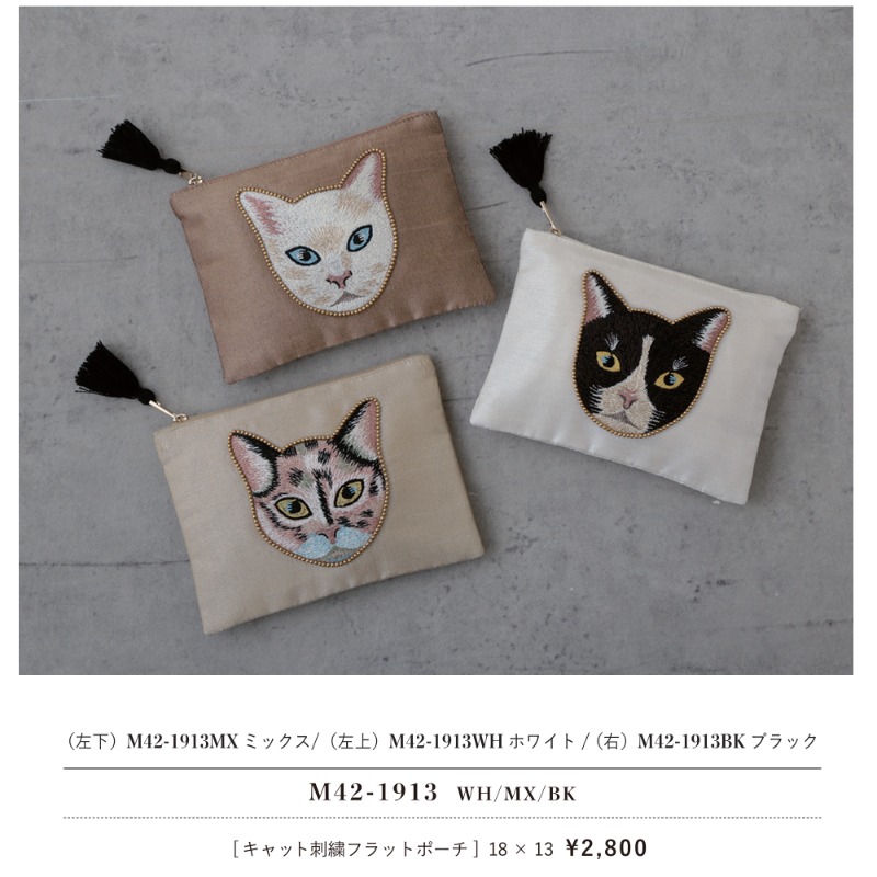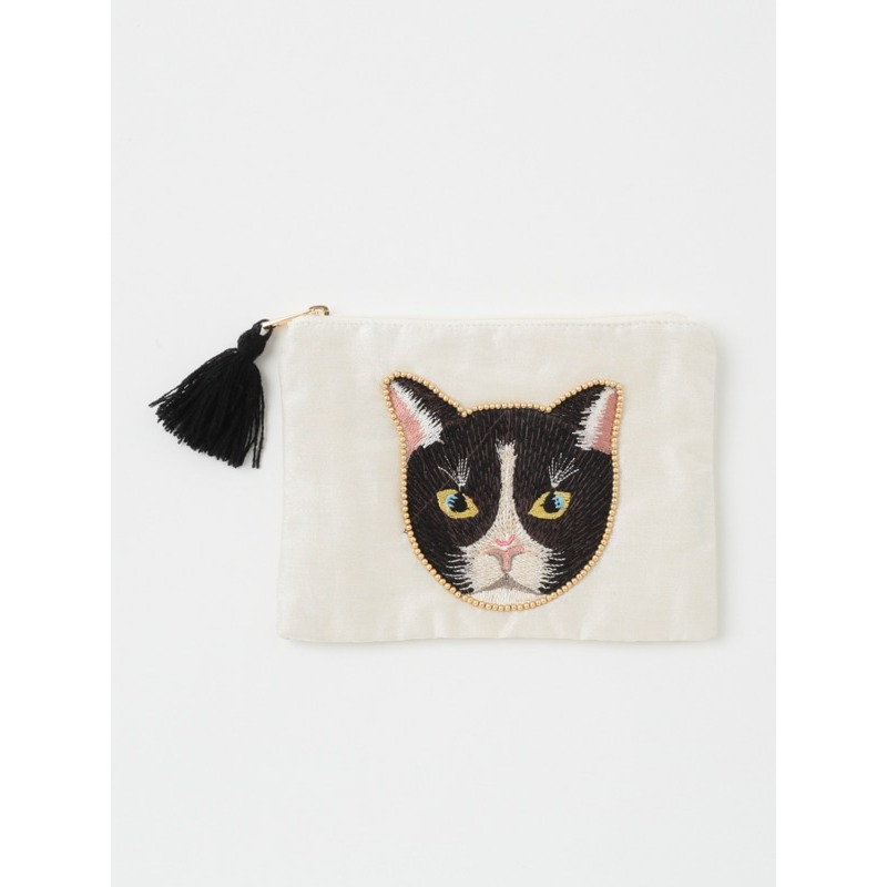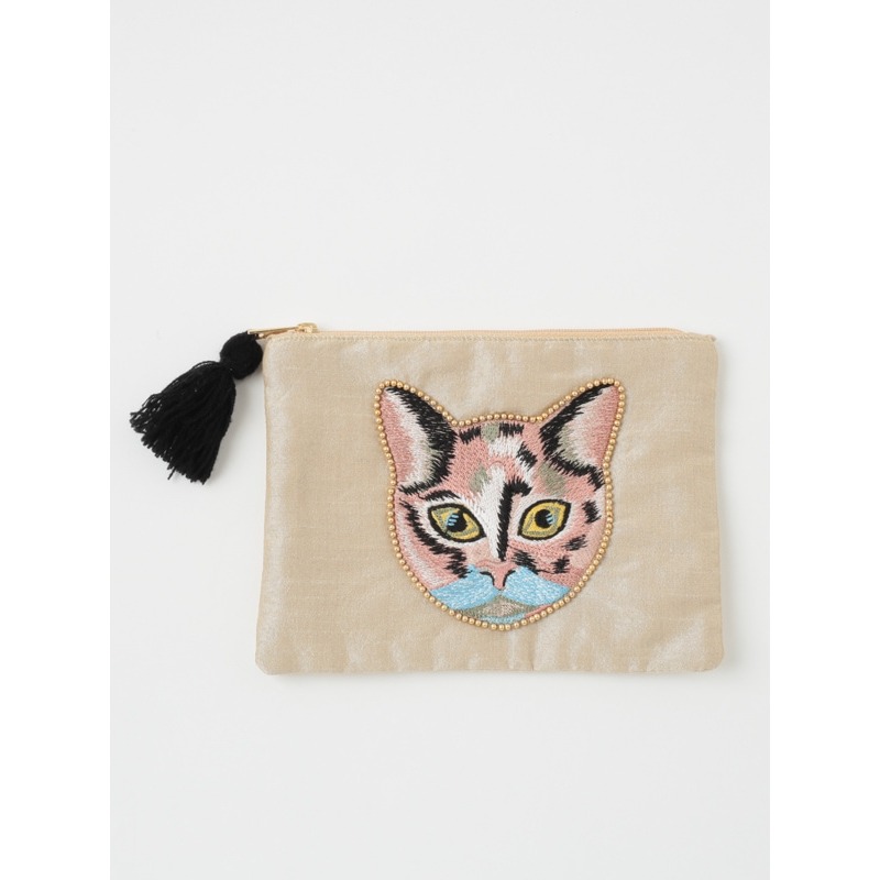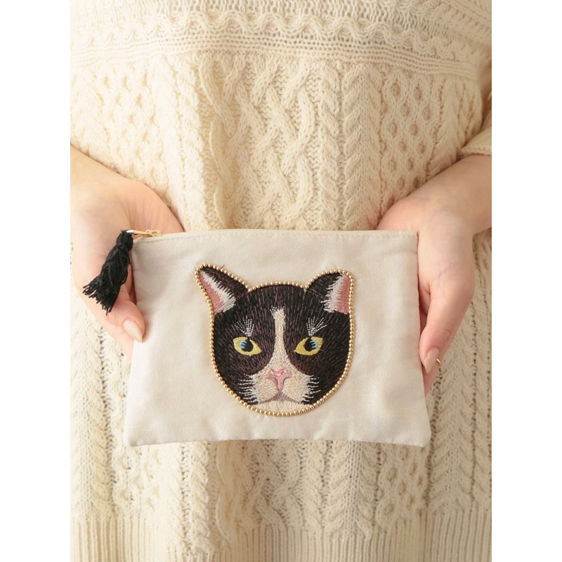 【東京かんかん】キャット刺繍フラットポーチ 猫 ハンドメイド