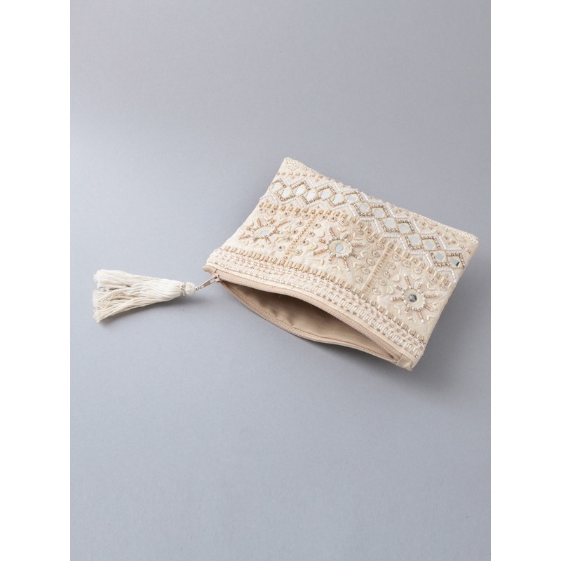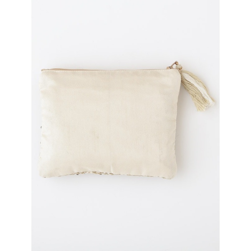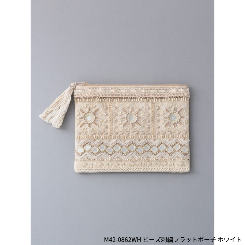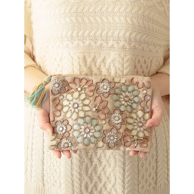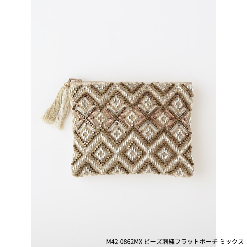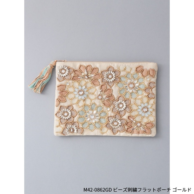 【東京かんかん】ビーズ刺繍フラットポーチ ハンドメイド