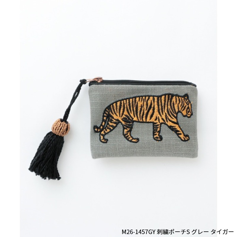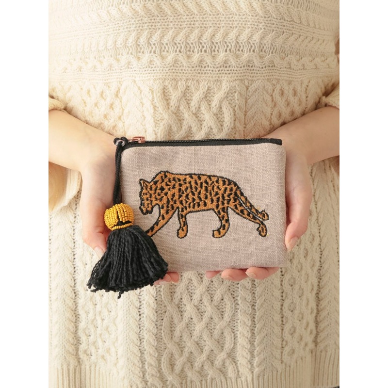 【東京かんかん】刺繍ポーチS タイガー&レオパード ハンドメイド