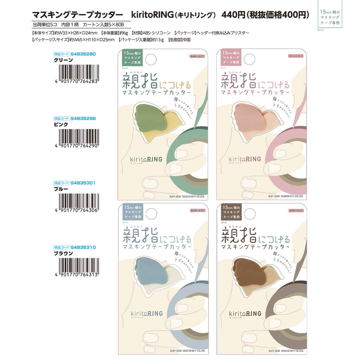 【サンスター文具】親指につけるマスキングテープカッター kiritoRING キリトリング