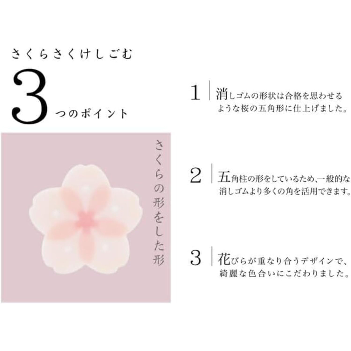 1. 消しゴムの形状は合格を思わせるような桜の五角形に仕上げました。