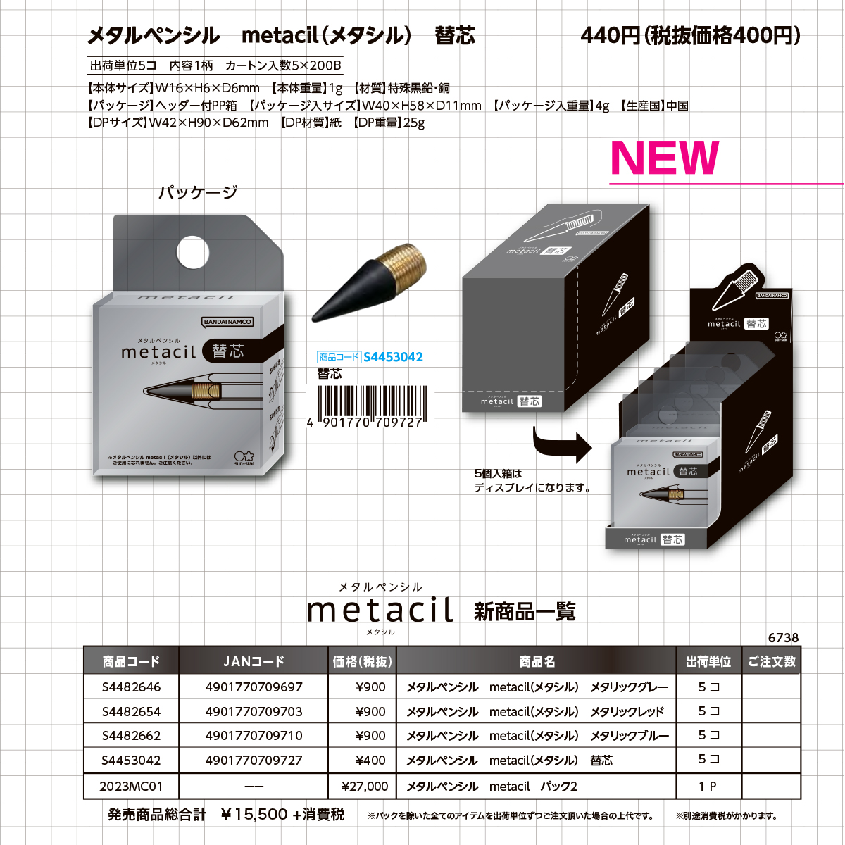 【サンスター文具】メタルペンシル metacil メタシル 替芯 金属鉛筆