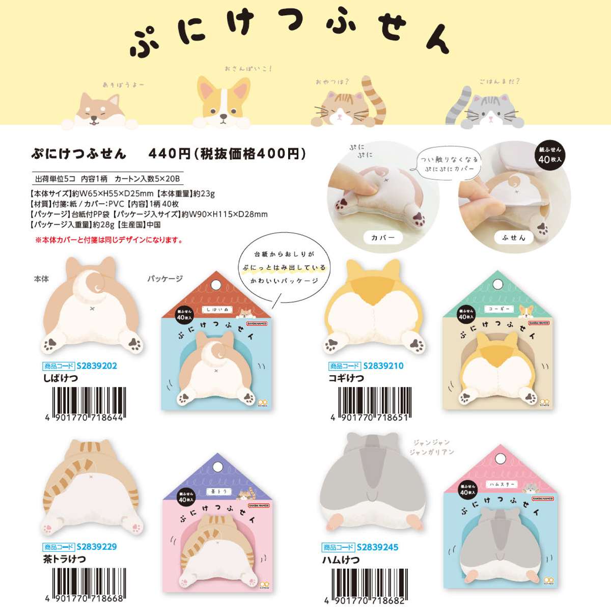 どうぶつたちのかわいいおしりがぷにぷにカバーのふせんになったよ!
