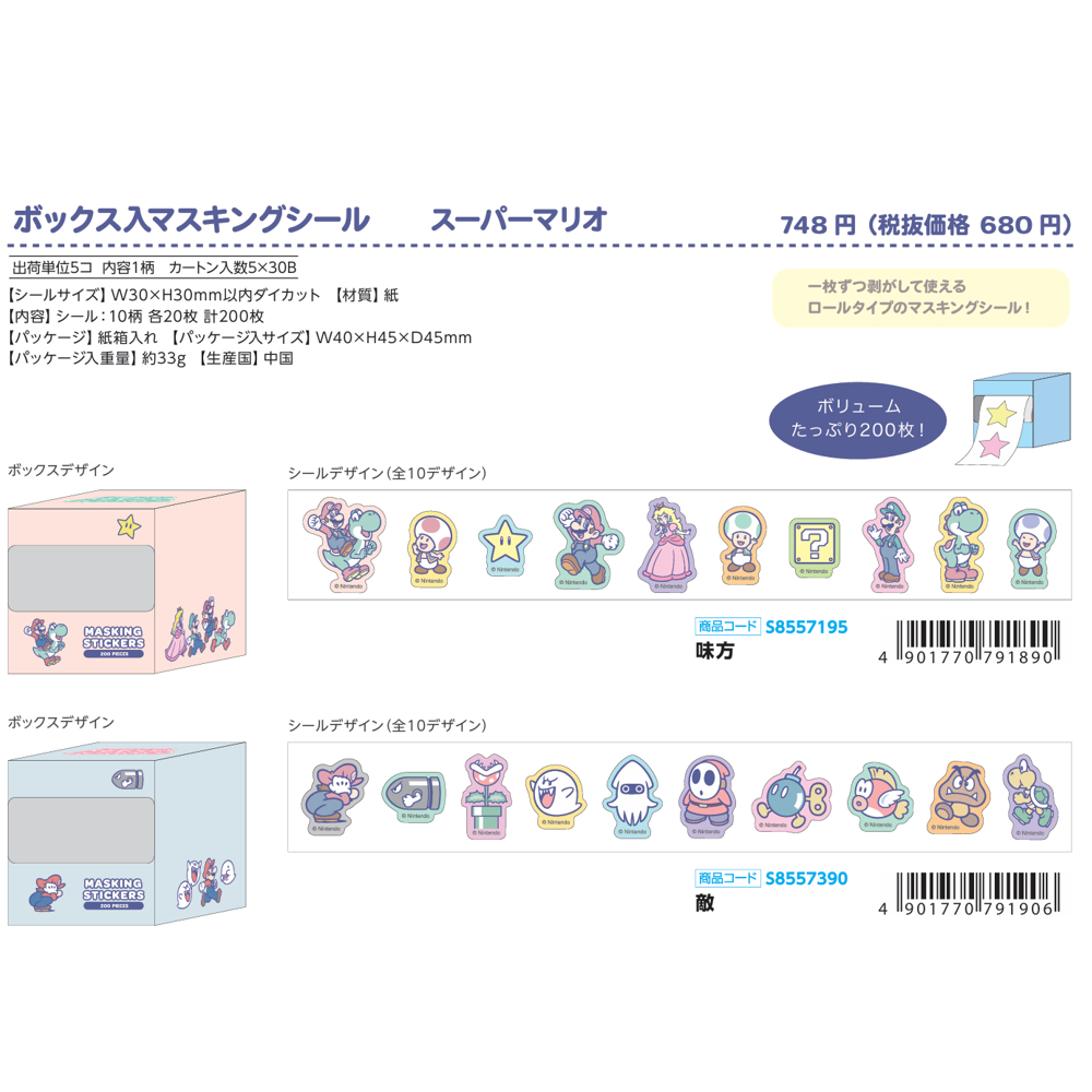 【サンスター文具】ボックス入りマスキングシール スーパーマリオ