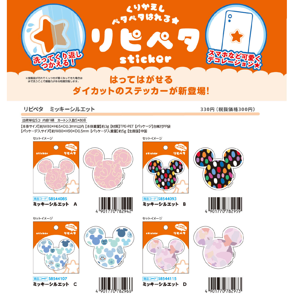 【サンスター文具】リピペタ ミッキーシルエット ステッカー