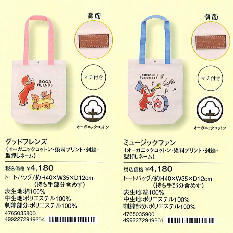 【おさるのジョージ】トートバッグ グッドフレンズ&ミュージックファン