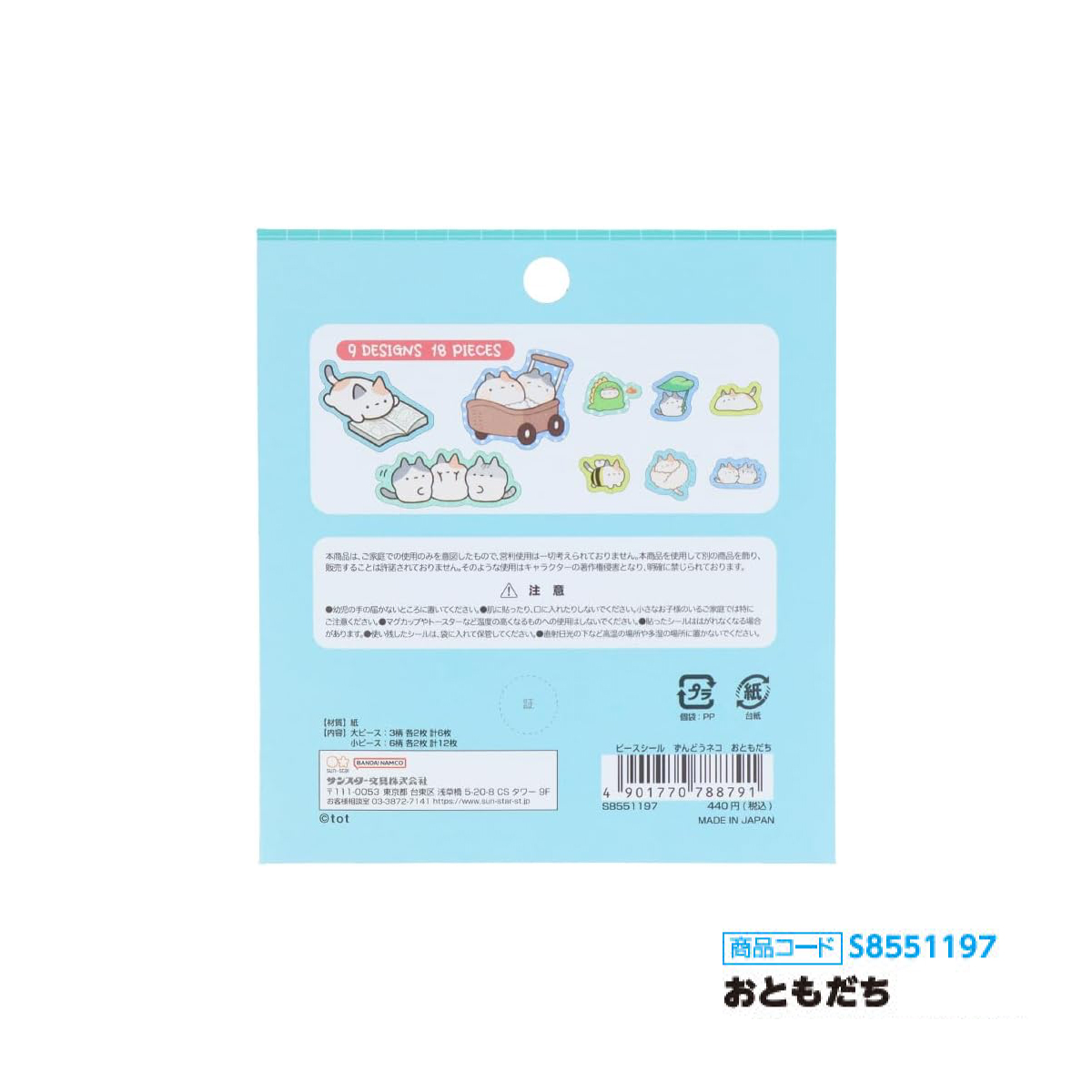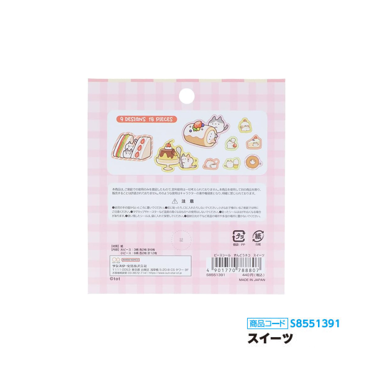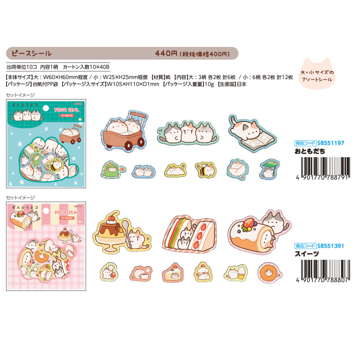 【サンスター文具】ずんどうネコ ピースシール