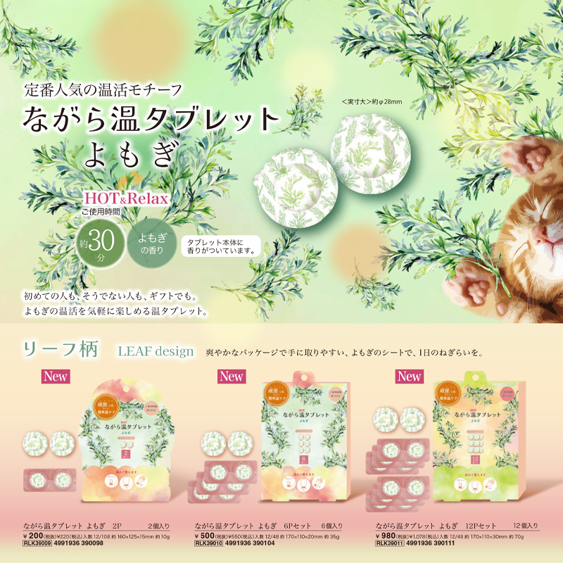 《予約:入荷11月下旬》【ほんやら堂】ながら温タブレット よもぎ リーフ柄