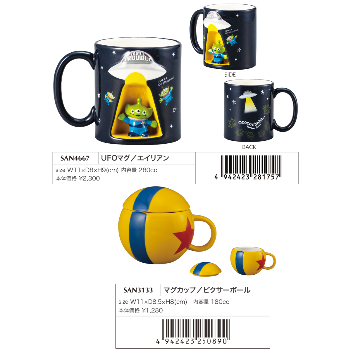 サイズ | 【UFOマグ エイリアン】W11×D8×H9(cm) 内容量:280cc 【マグカップ ピクサーボール】W11×D8.5×H8(cm) 内容量:180cc |
