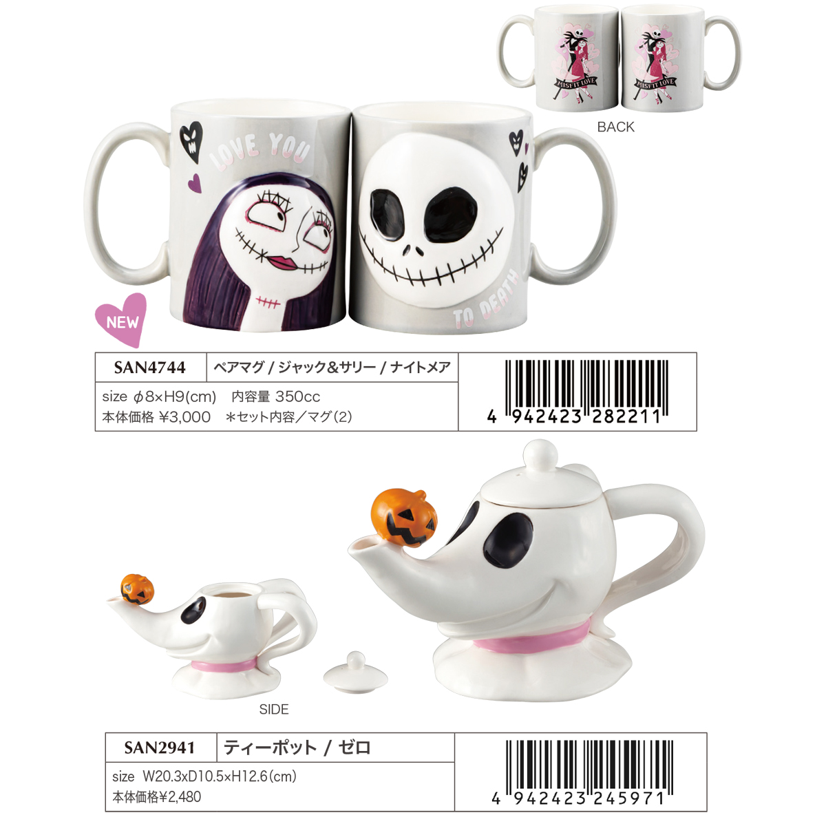 サイズ | 【ペアマグ ジャック&サリー】φ8×H9(cm) 内容量:350cc セット内容:マグ(2) 【ティーポット ゼロ】W20.3×D10.5×H12.6(cm) |