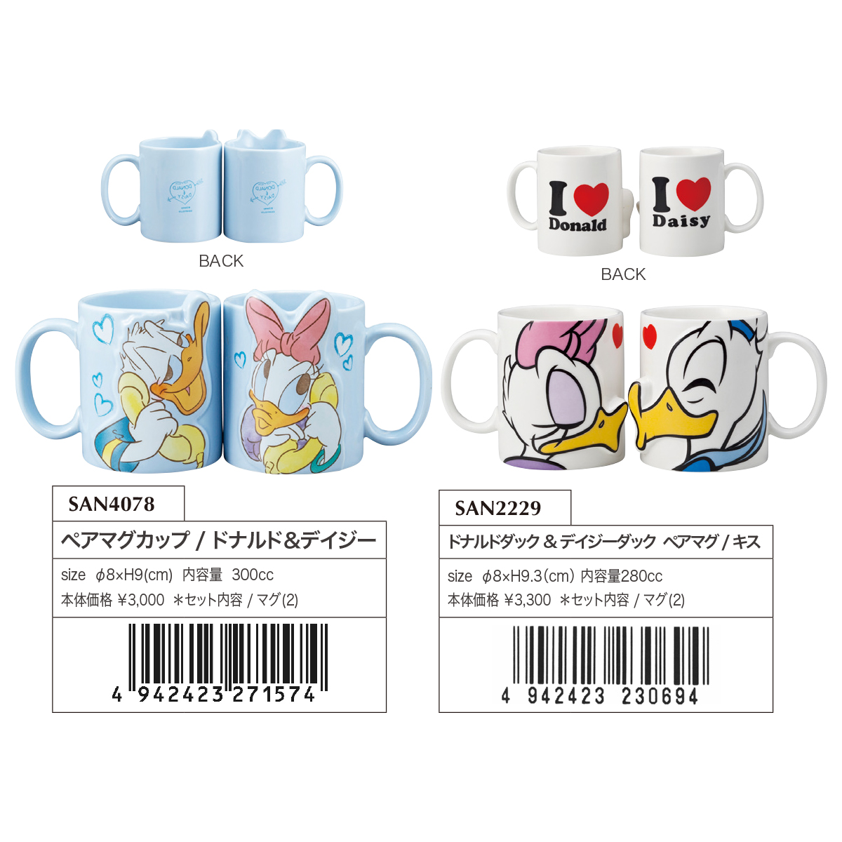 | サイズ | 【ドナルド&デイジー ペアマグカップ】φ8×H9(cm) 内容量:300cc セット内容:マグ(2) 【ドナルド&デイジー ペアマグ キス】φ8×H9.3(cm) 内容量:280cc セット内容:マグ(2) |