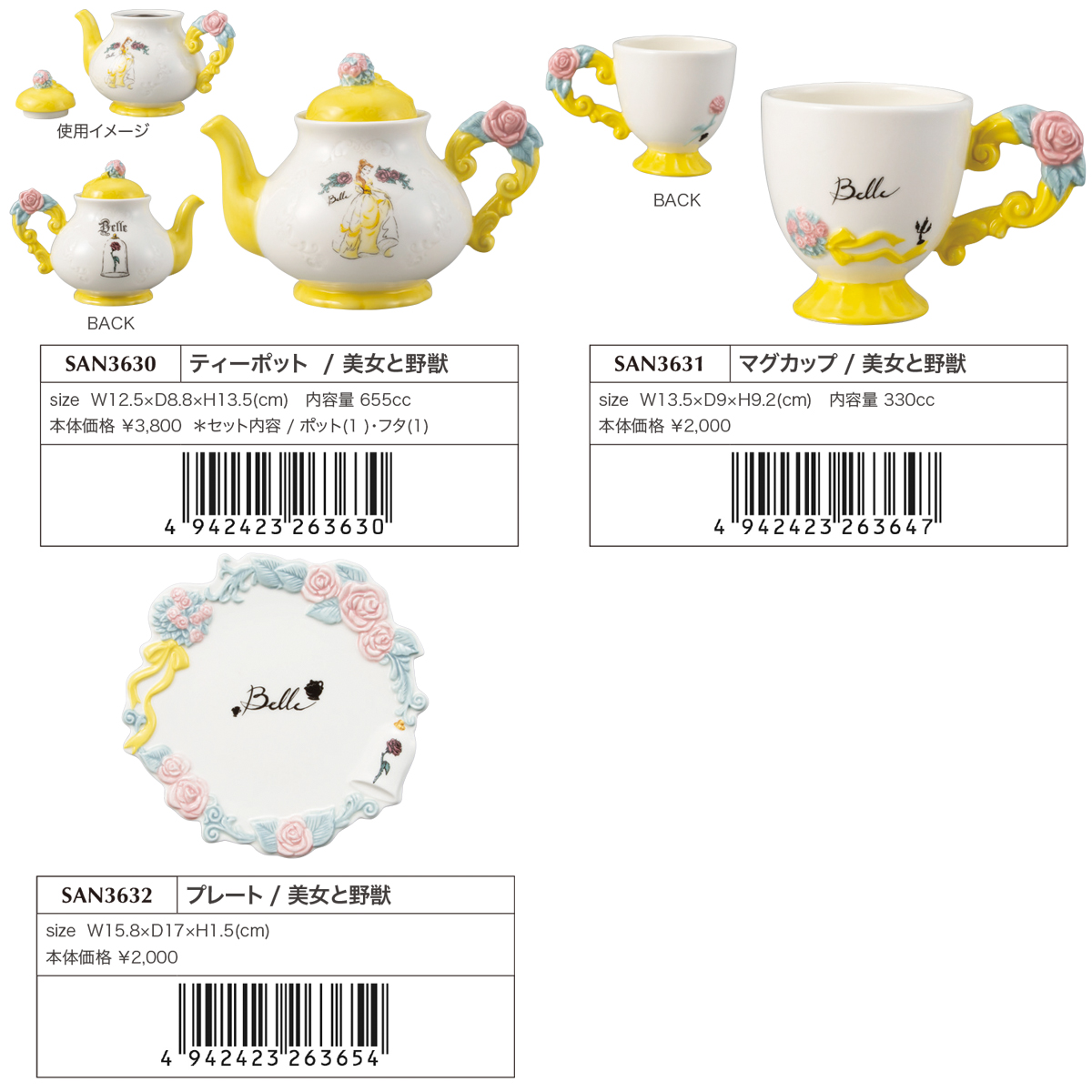 サイズ | 【美女と野獣 ティーポット】W12.5×D8.8×H13.5(cm) 内容量:655cc 【美女と野獣 マグカップ】W13.5×D9×H9.2(cm) 内容量:330cc 【美女と野獣 プレート】W15.8×D17×H1.5(cm) |