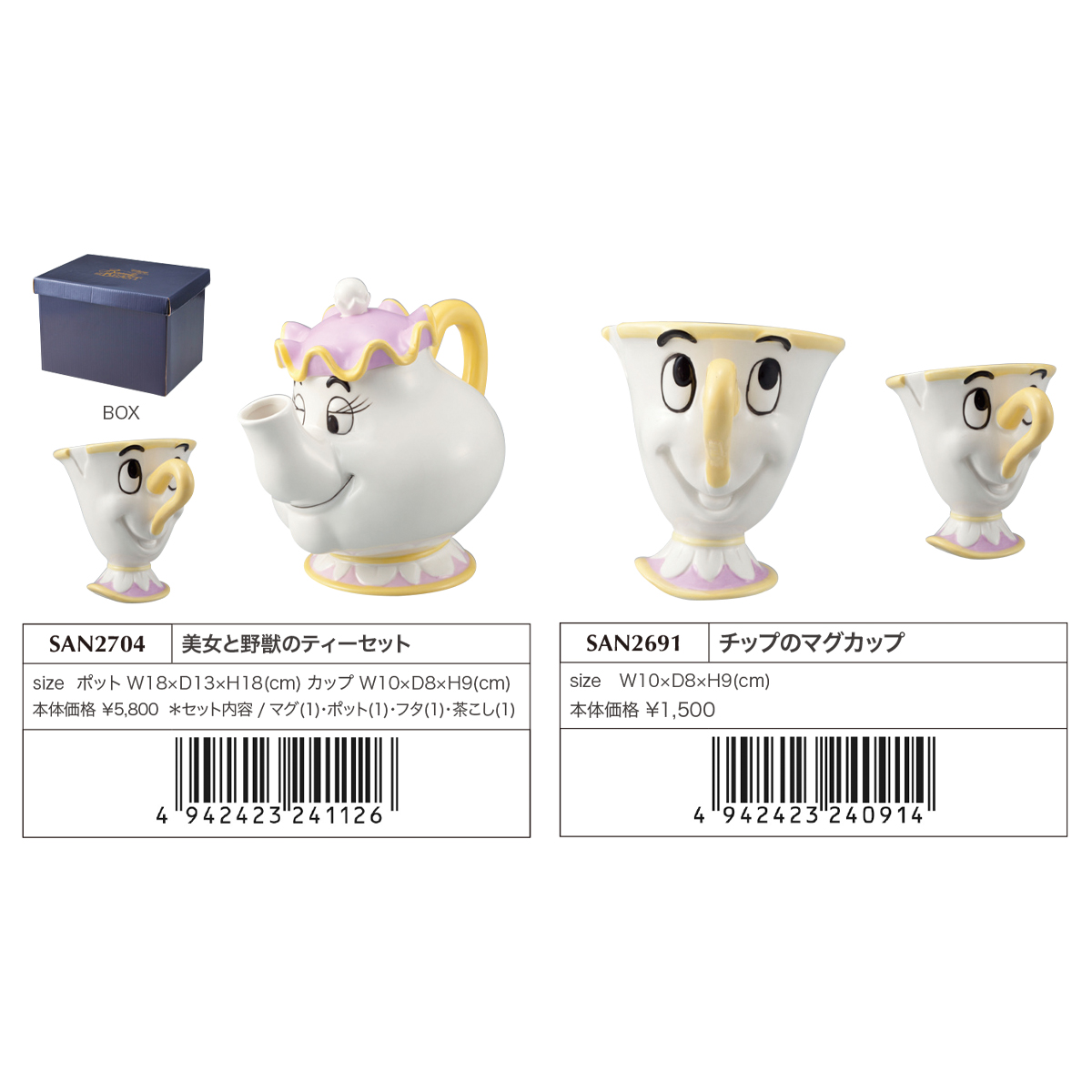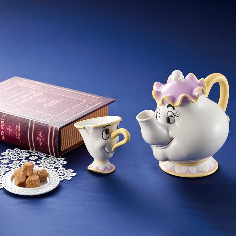 サイズ | 【美女と野獣 ティーポット ポット夫人】 ポット:W18×D13×H18(cm) 内容量 900cc 【美女と野獣 マグカップ チップ】 W10×D8×H9(cm) 内容量 100cc 【美女と野獣のティーセット】 ポット:W18×D13×H18(cm) 内容量 900cc マグカップ:W10×D8×H9(cm) 内容量 100cc セット内容:マグ(1)・ポット(1)・フタ(1)・茶こし(1) |