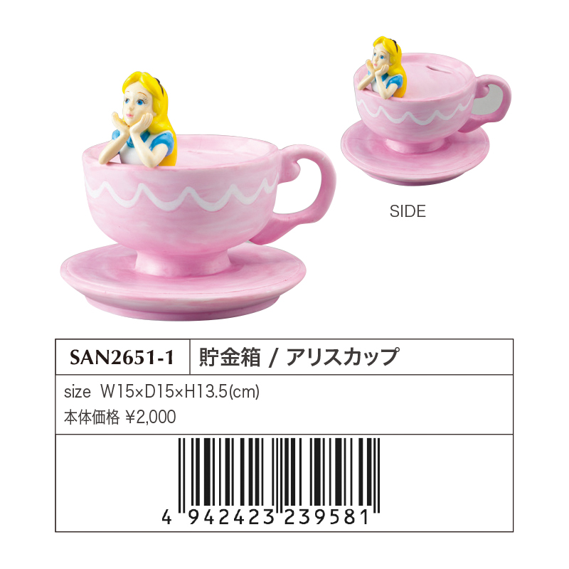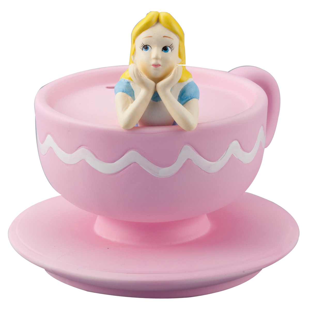 「ふしぎの国のアリス」アリスの貯金箱です。カップの中でアリスが黄昏れています。