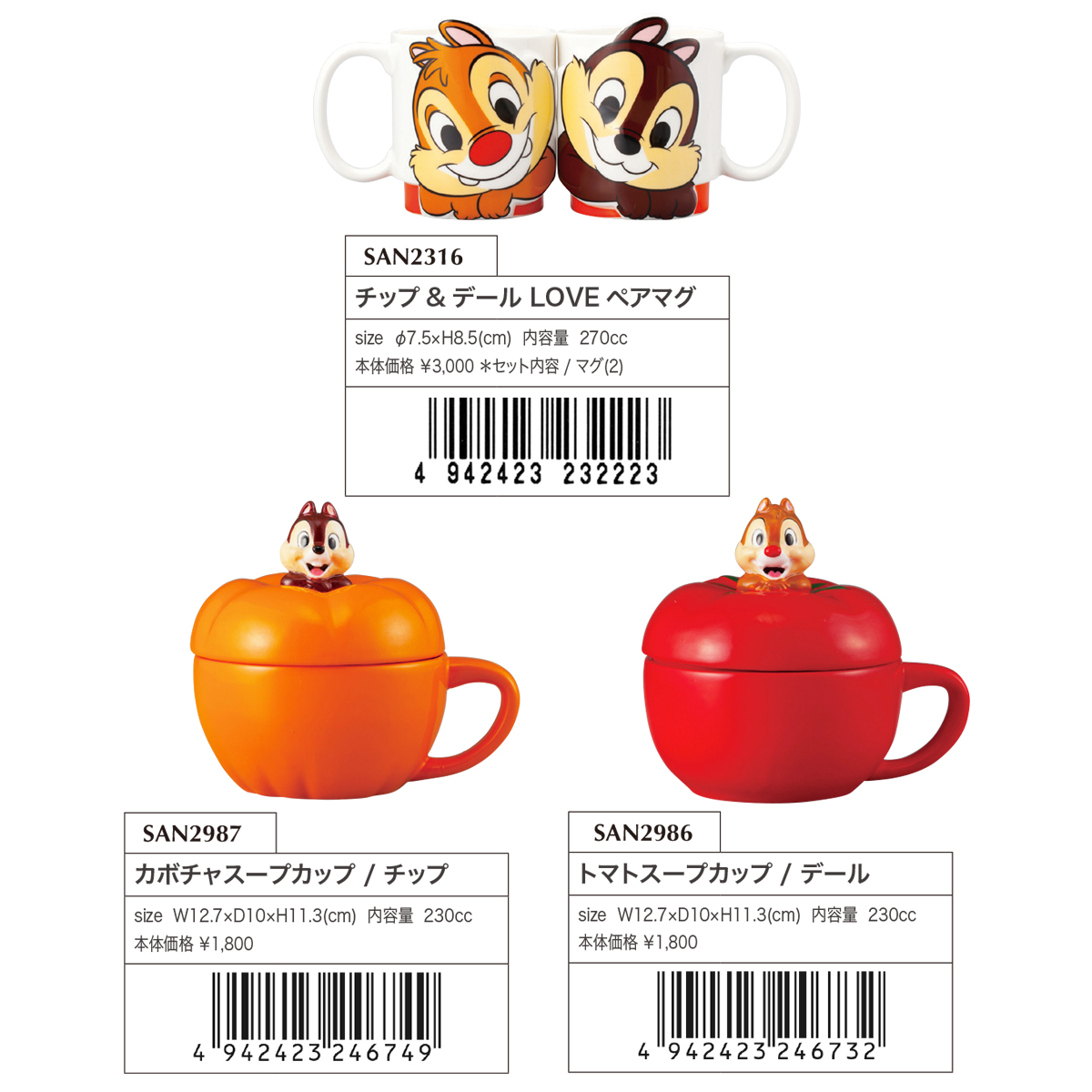 サイズ | 【LOVE ペアマグ】約Φ7.5×高さ8.5(cm) 内容量:270cc セット内容:マグ(2) 【カボチャスープカップ チップ】W12.7×D10×H11.3(cm) 内容量:230cc 【トマトスープカップ デール】W12.7×D10×H11.3(cm) 内容量:230cc |
