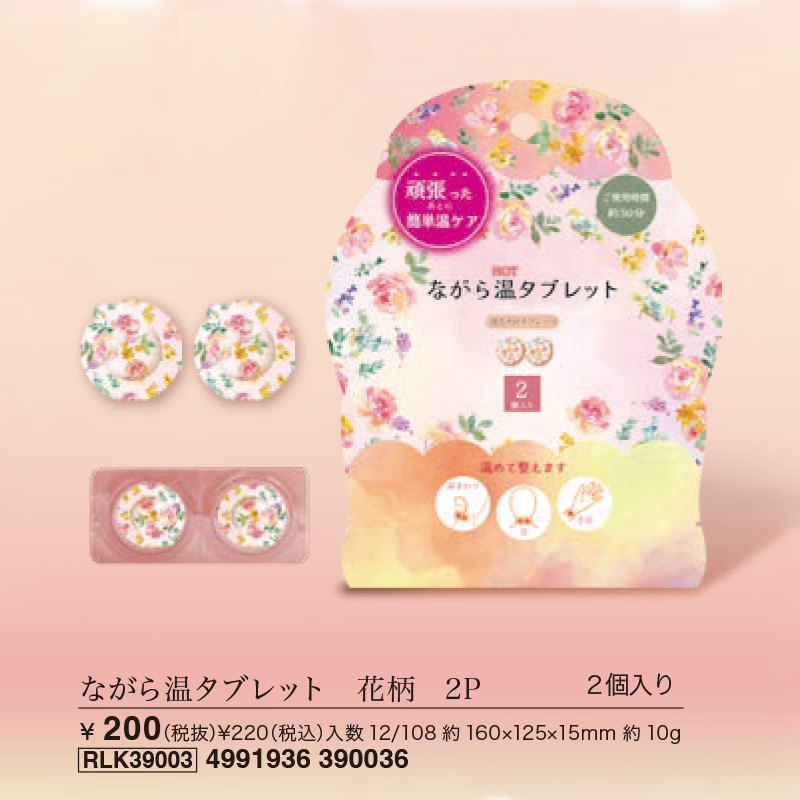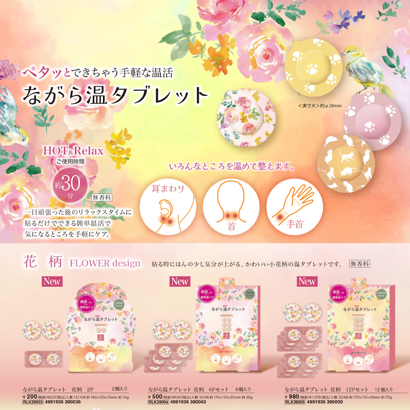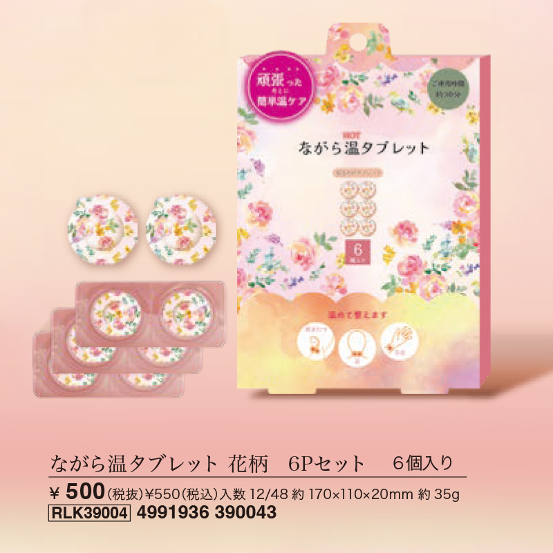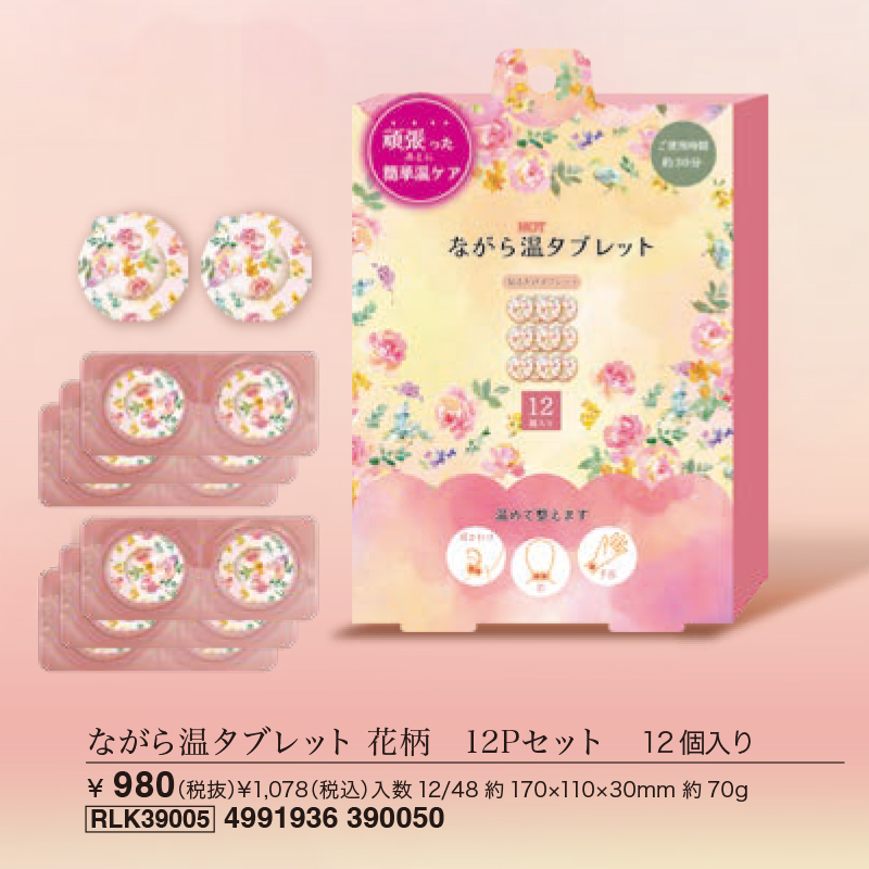 貼る時にほんの少し気分が上がる、かわいい小花柄の温タブレットです。