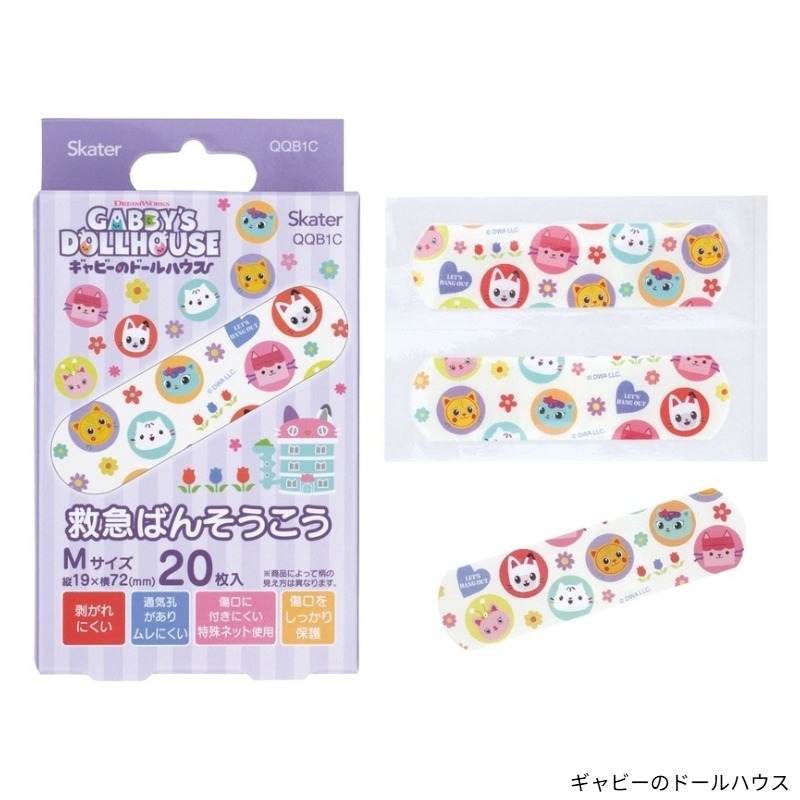 救急バンソウコウM 20枚入 QQB1C 縦19×横72mm キッズ 絆創膏【スケーター】