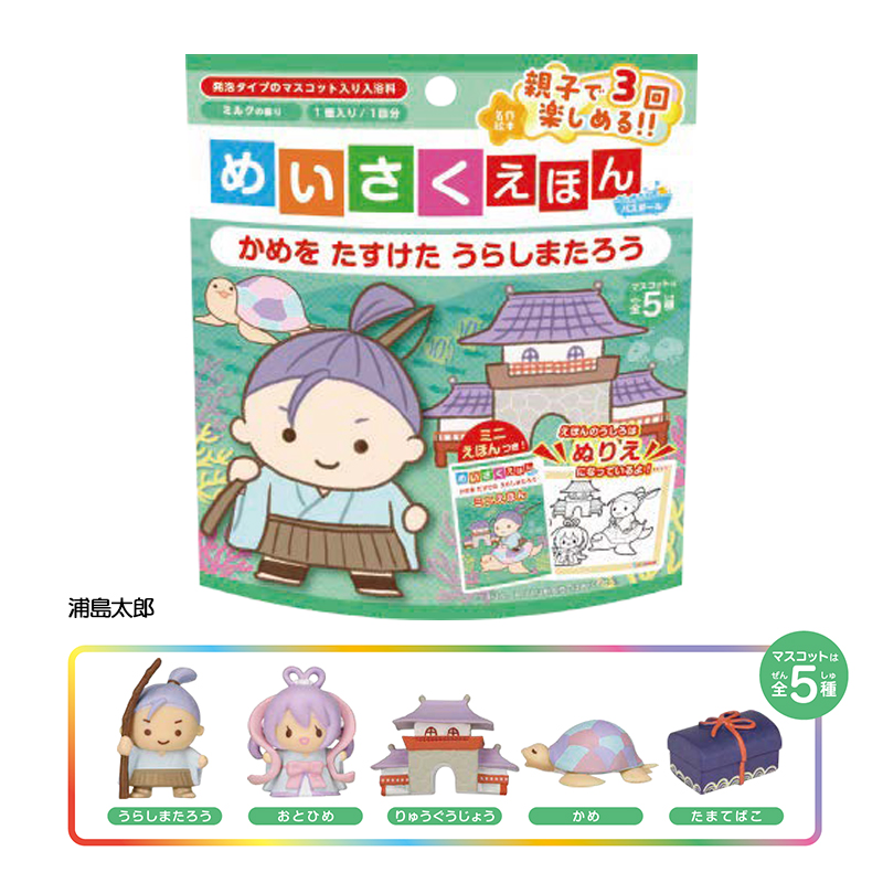 入浴料が溶けるとえほんの中のキャラクターがどれかひとつ出てくるよ!
