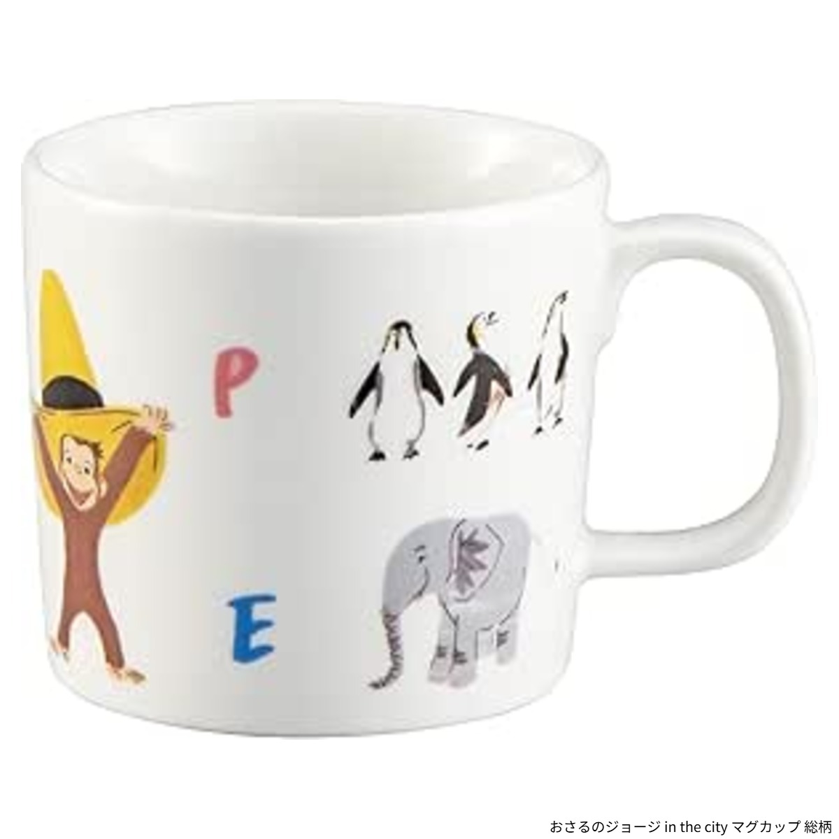 おさるのジョージのマグカップです。ジョージと動物たちのイラストが描かれたデザインがとってもキュート!