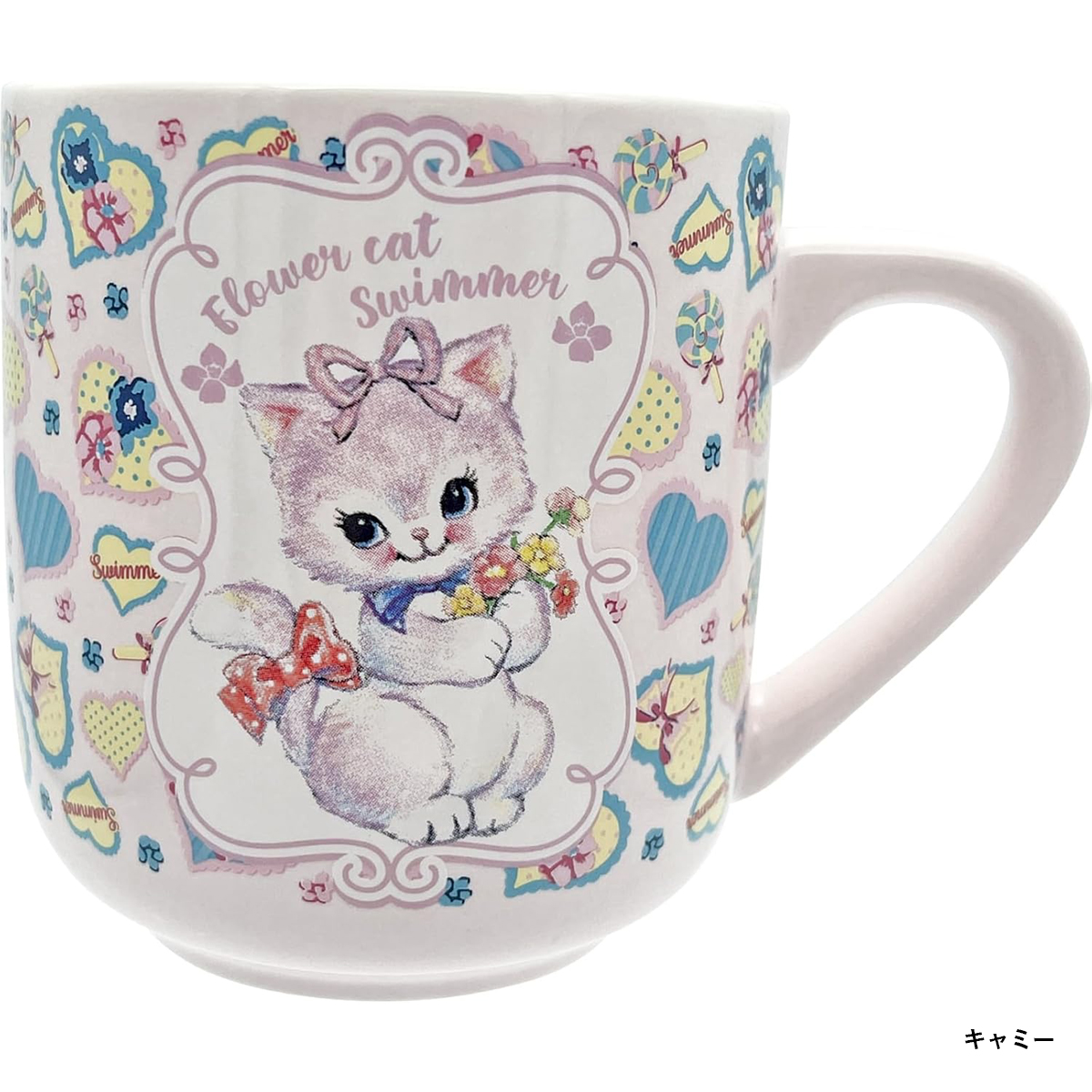 平成レトロで人気のSWIMMER!キャラクターの周囲を覆った花柄のデザインがとても可愛い人気商品です。