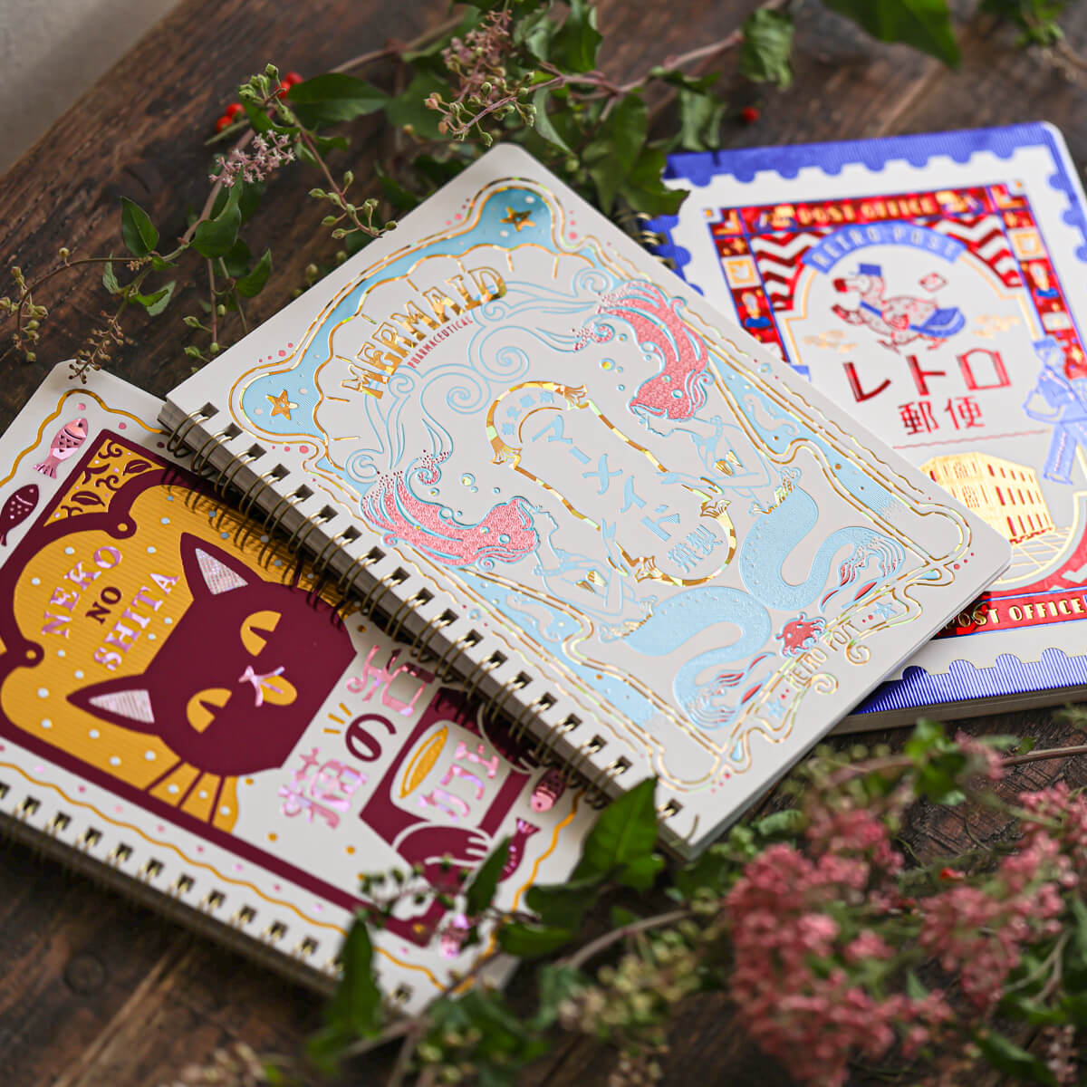 レトロ可愛いデザインに箔押し加工を施した、輝きとわくわくの詰まったおしゃれなノートです。