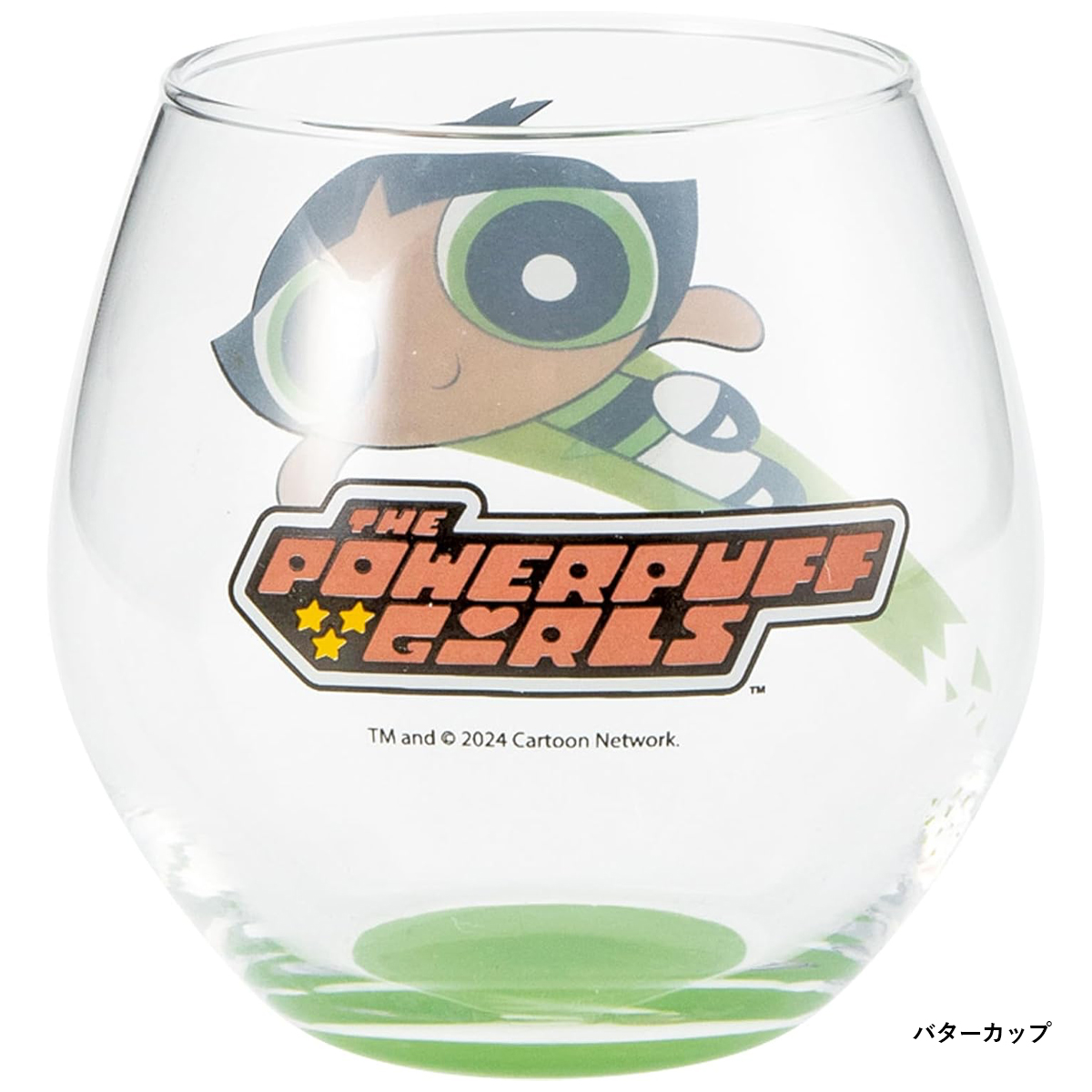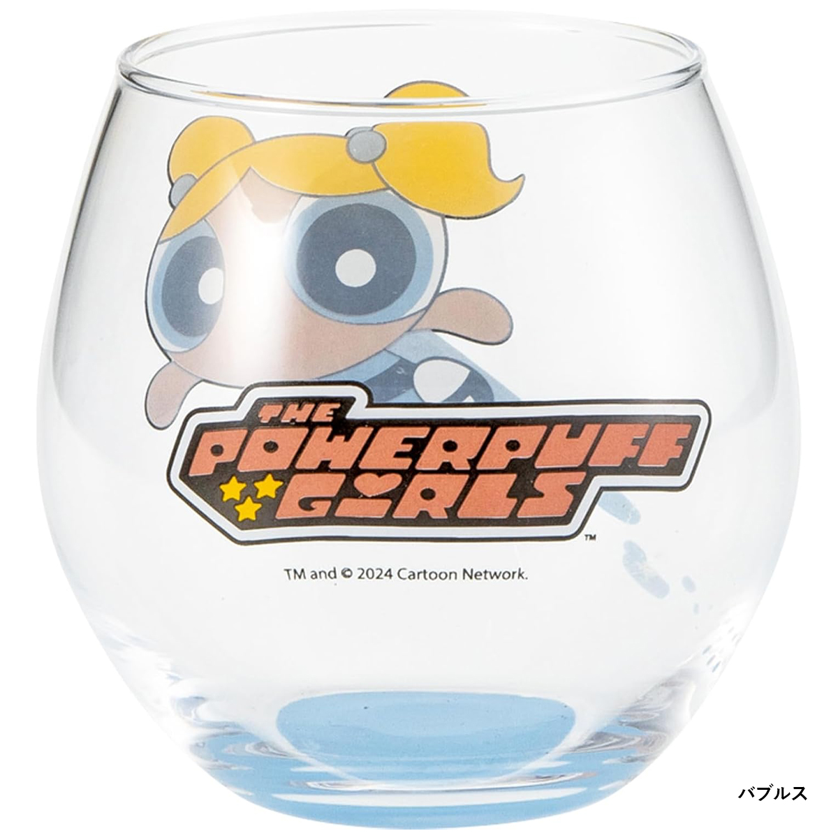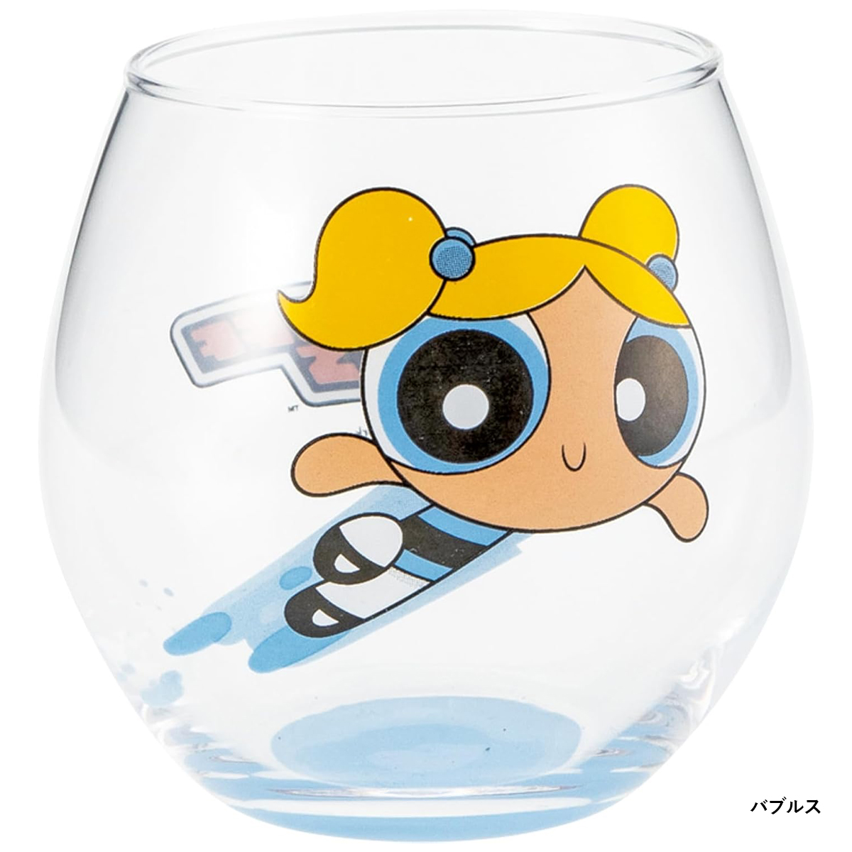 可愛らしいフォルムのグラスにパワーパフガールズのイラストが描かれています。