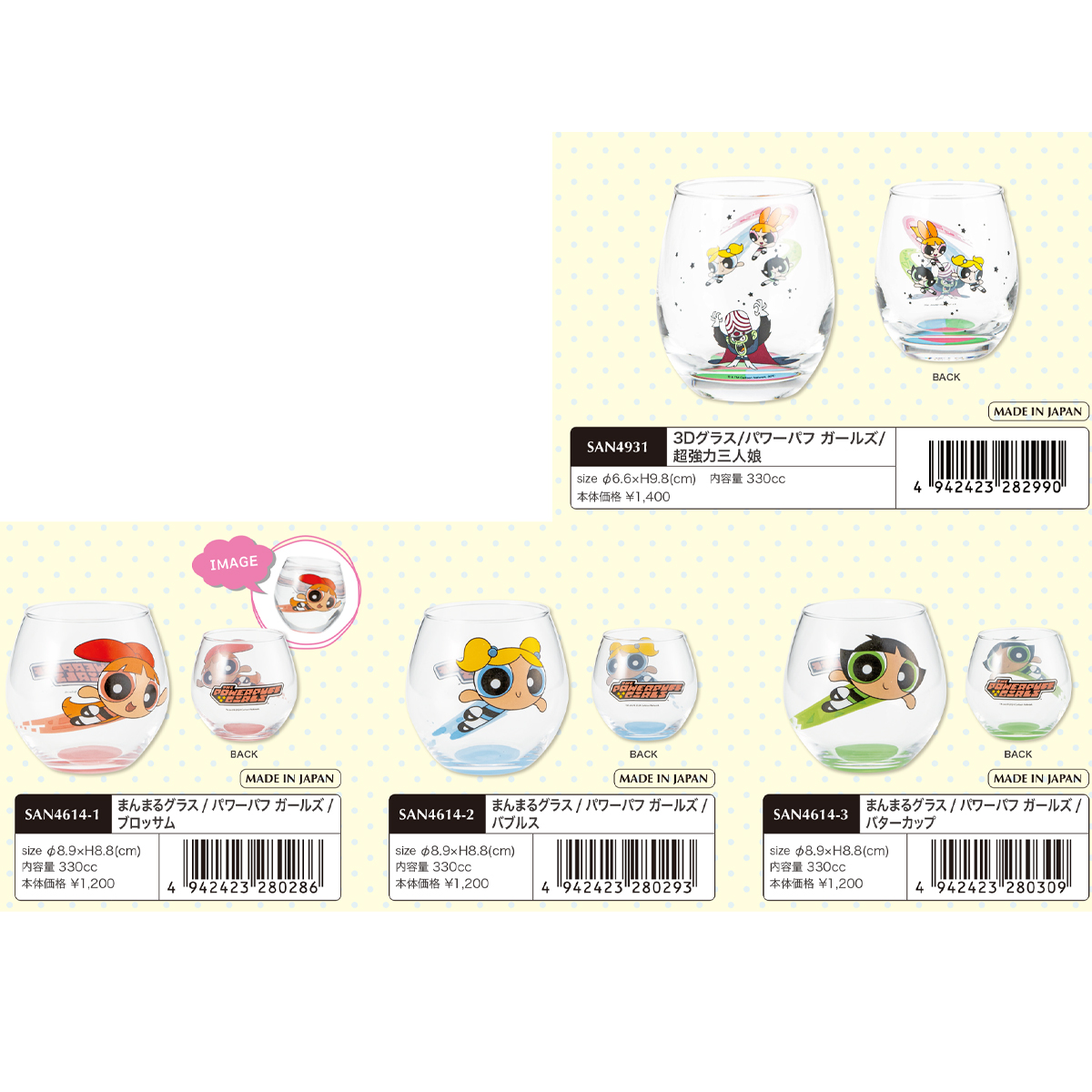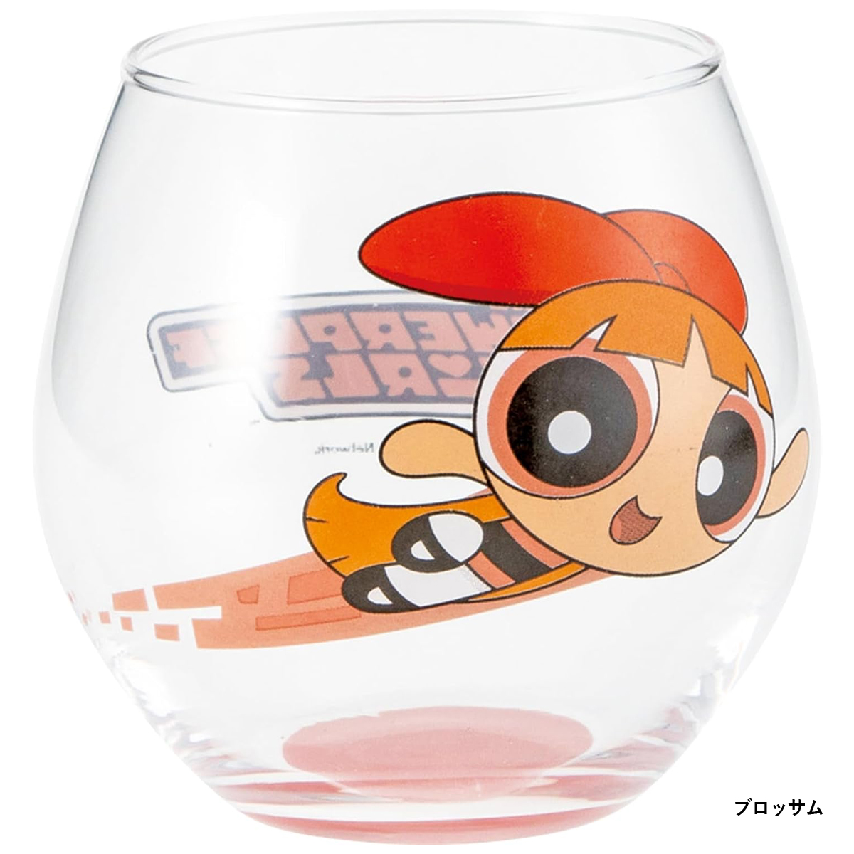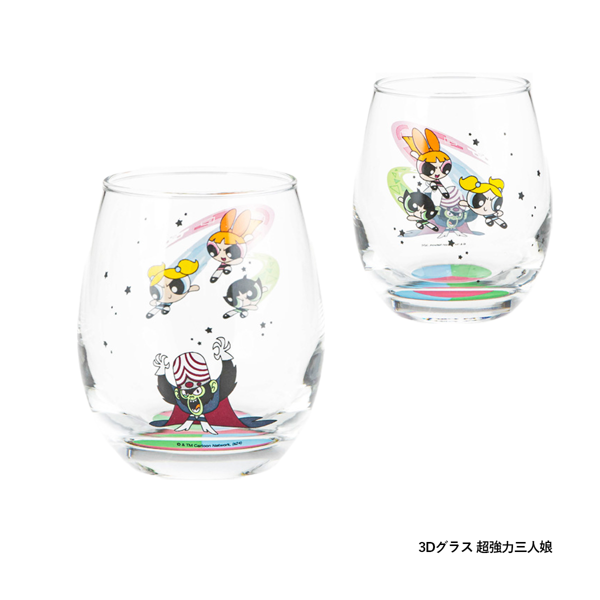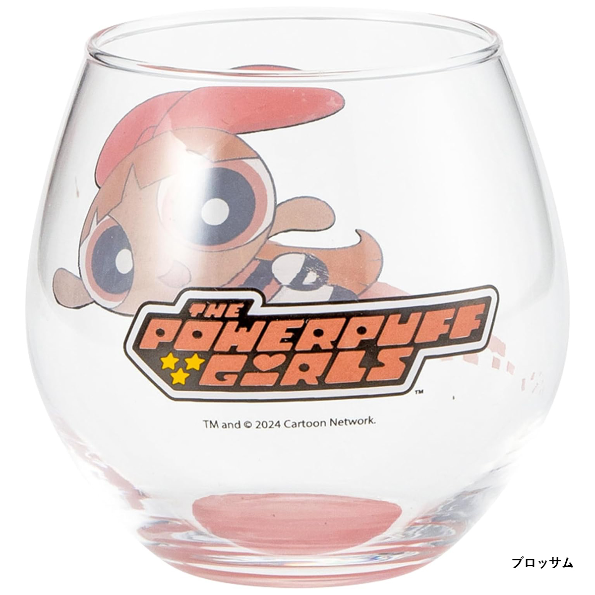 可愛らしいフォルムのグラスにパワーパフガールズのイラストが描かれています。