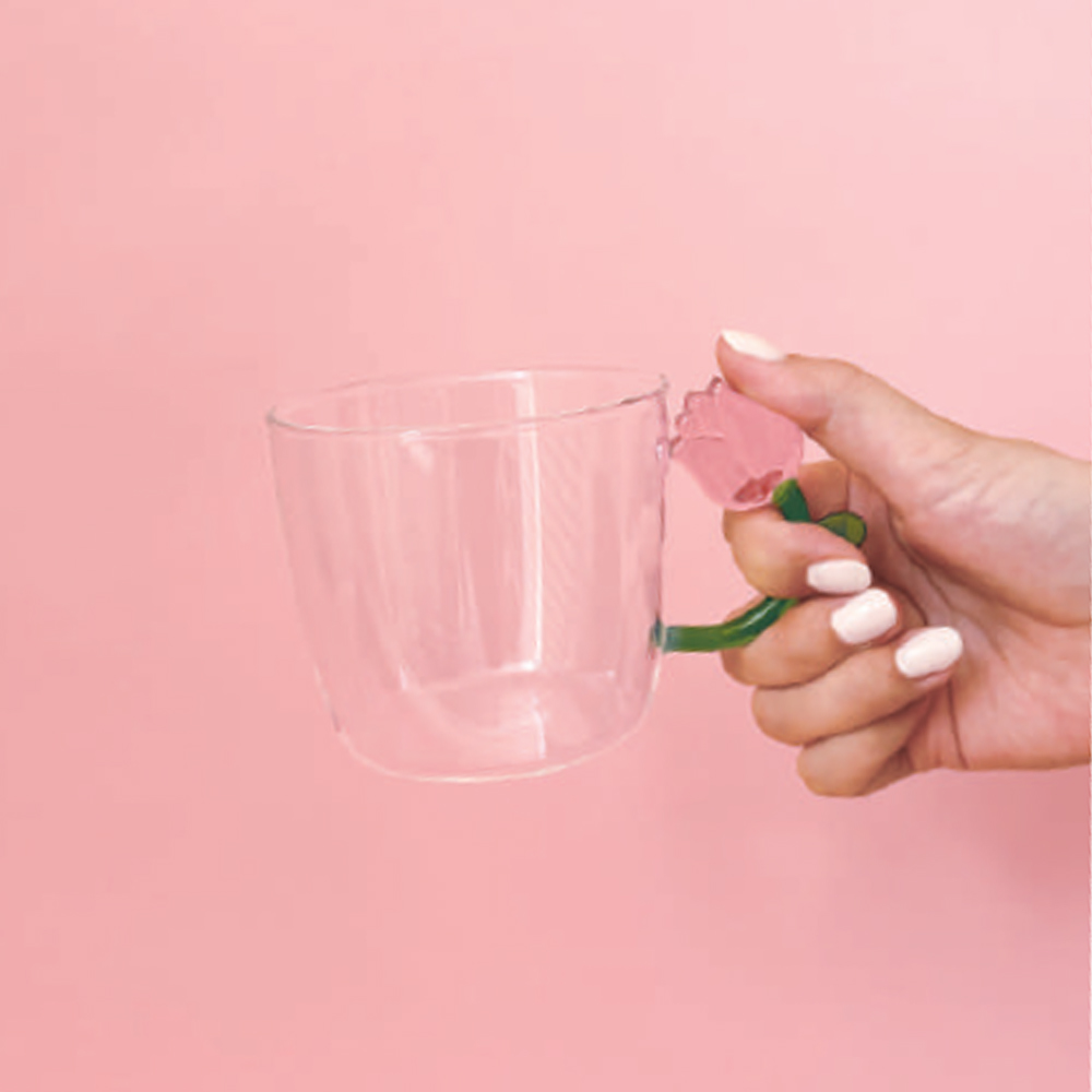 【Flower mug glass】耐熱フラワーグラス マグカップ コップ 耐熱ガラス