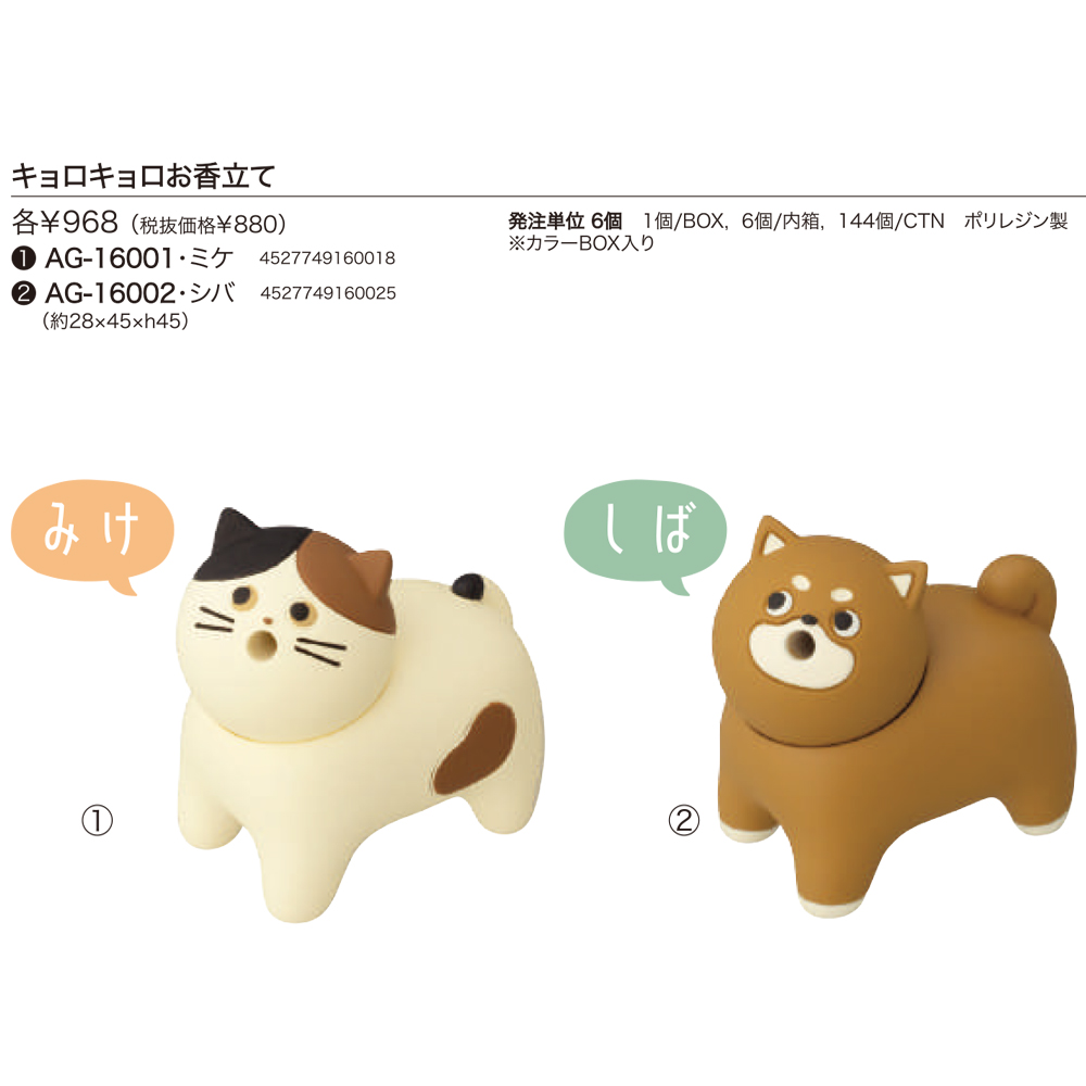 キョロキョロお香立て 猫&柴犬 ねこ