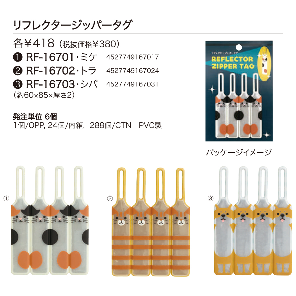 リフレクタージッパータグ 猫&柴犬 ねこ 反射材