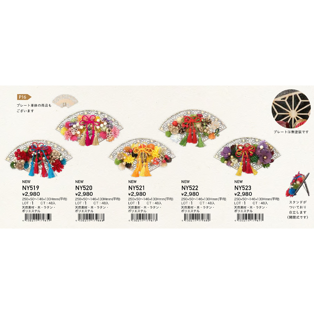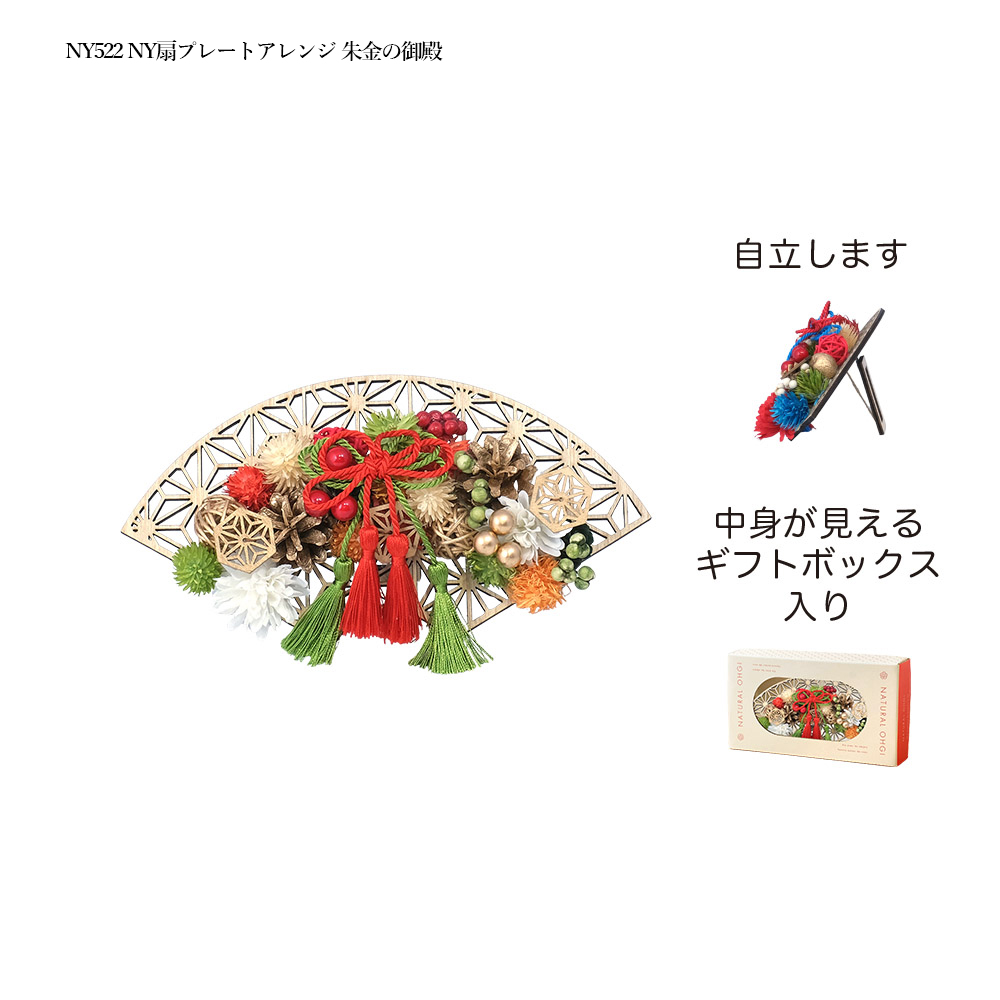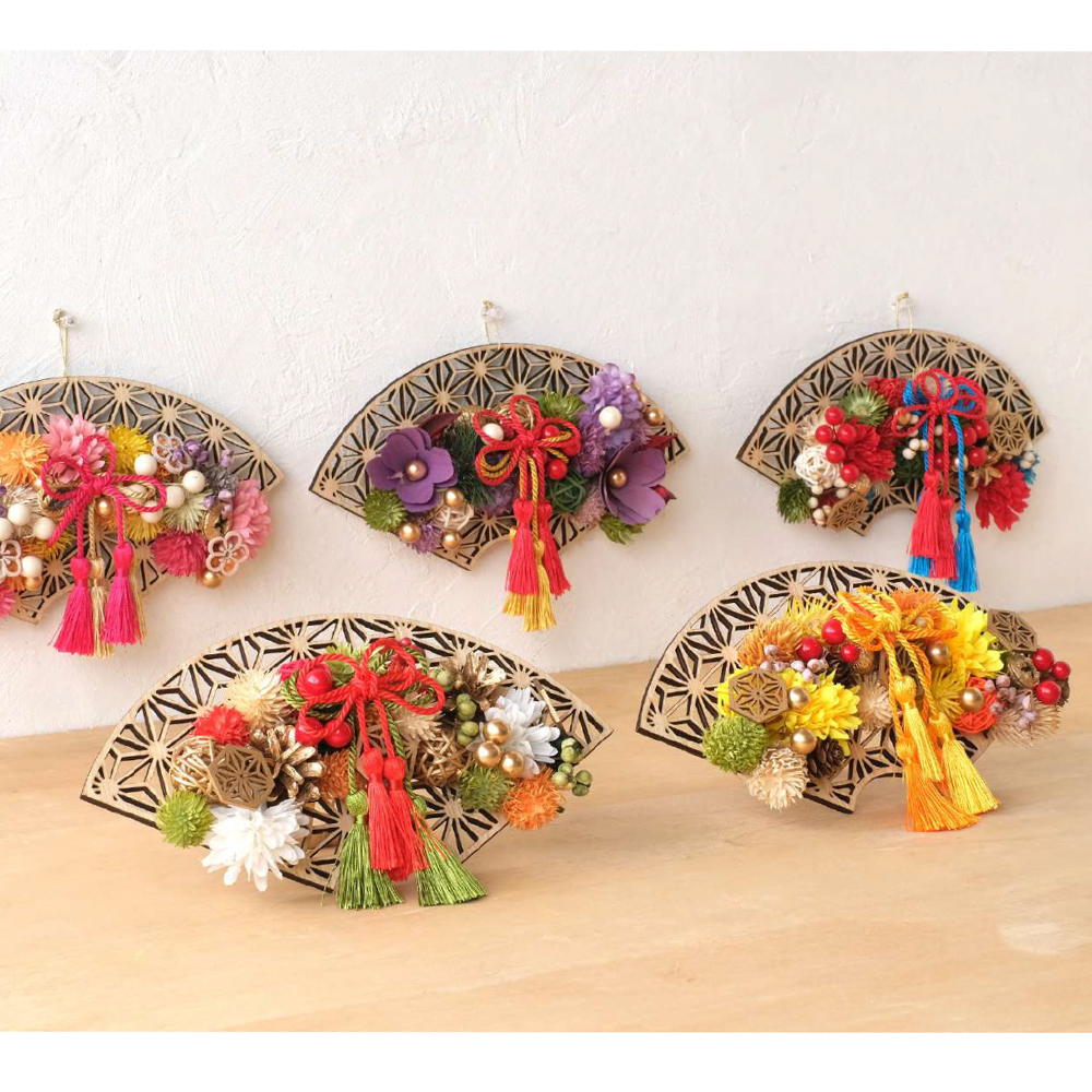 【迎春・新年のお正月飾りに】扇プレートアレンジ ジャパネスク 和風