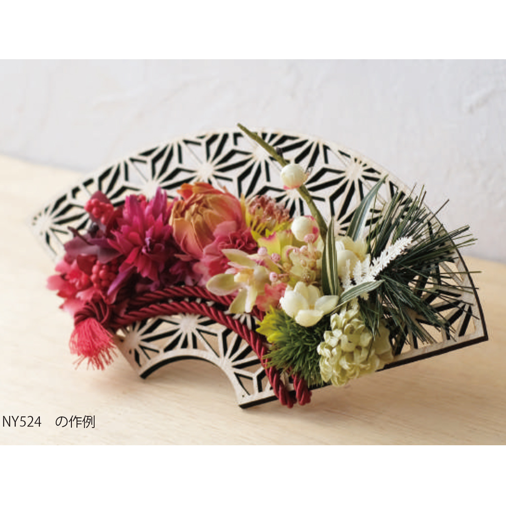 【迎春・新年のお正月飾りに】ハンドメイド用 扇プレート フラワーアレンジ