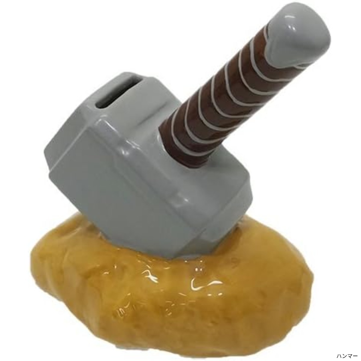 サイズ | 【貯金箱 スパイダーマン】W9×D10.3×H11.4(cm) 【貯金箱 ナノ・ガントレット】W10×D10×H16(cm) 【貯金箱 ガソリンポンプ】W13×D9×H14(cm) 【貯金箱 ハンマー】W12×D5×H12.5(cm) 【貯金箱 I LOVE YOU 3000】W8×D6.5×H19(cm) |