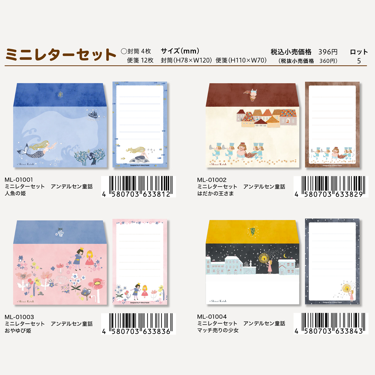 サイズ | 封筒:H78×W120 便箋:H110×W70 封筒4枚、便箋12枚 |