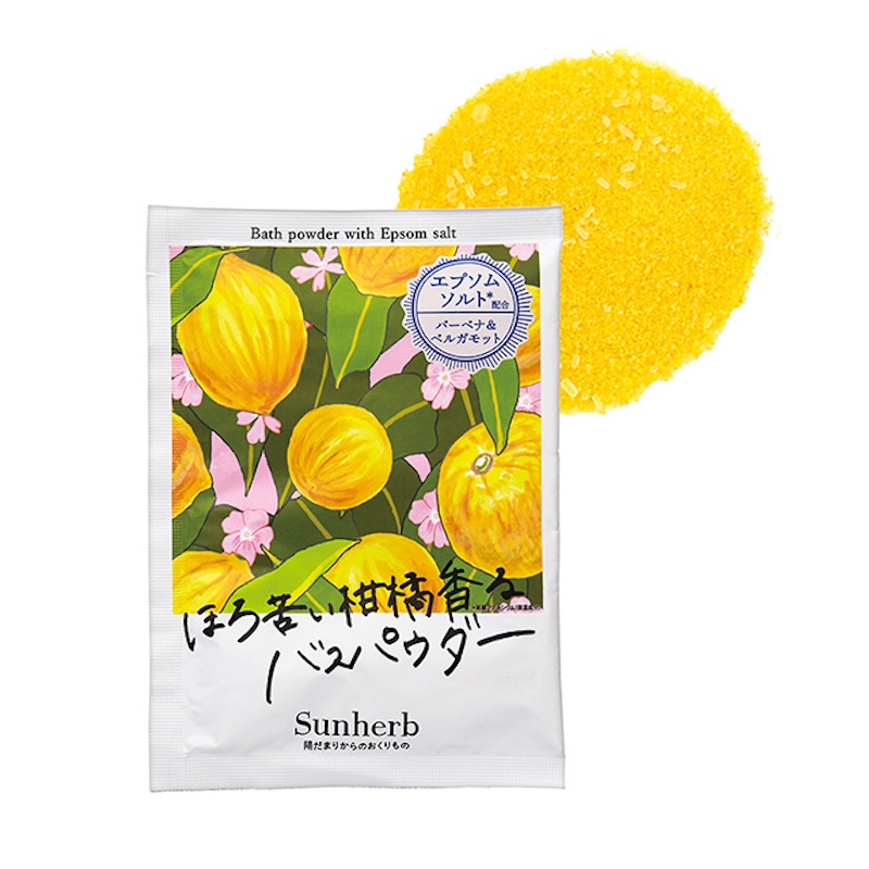 陽だまりの中で見つけた果実や植物の心地よい香り広がる、エプソムソルト*配合のバスパウダー 。